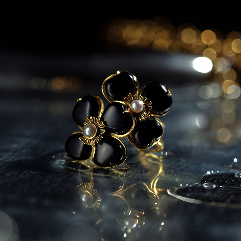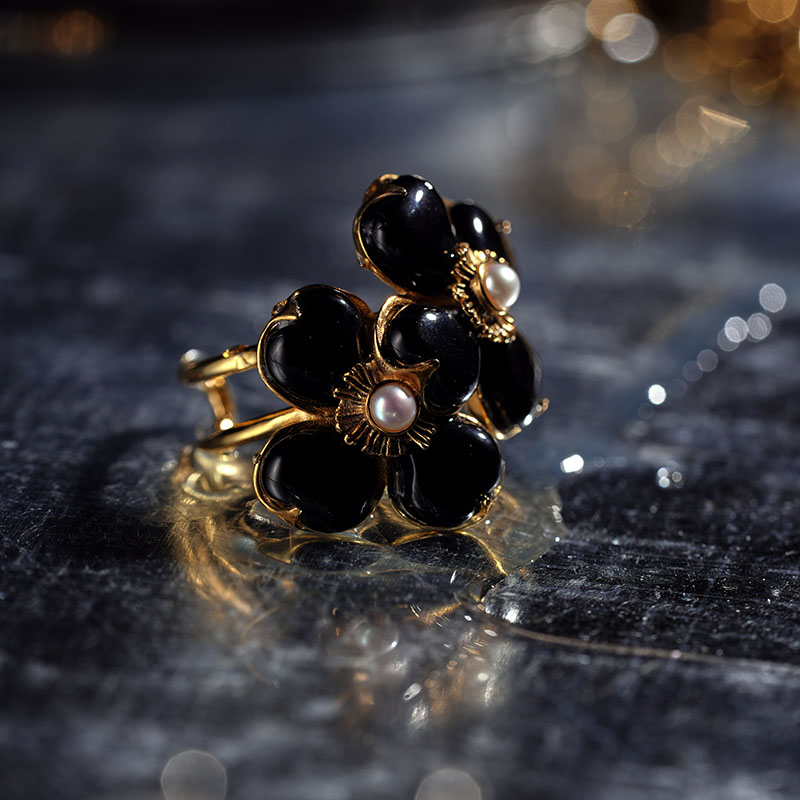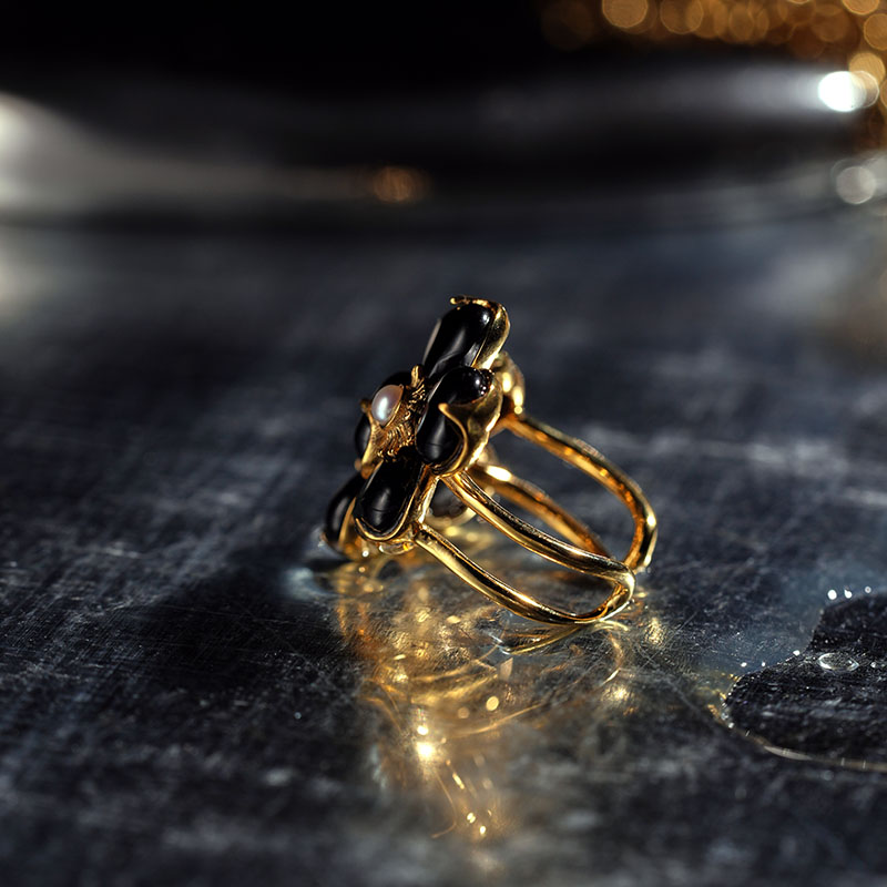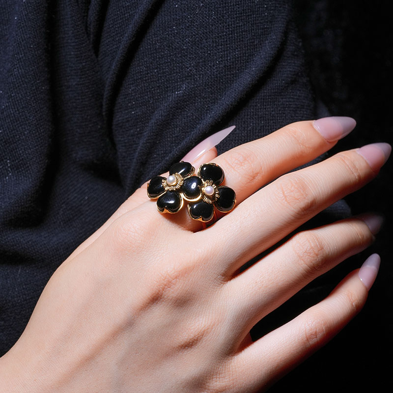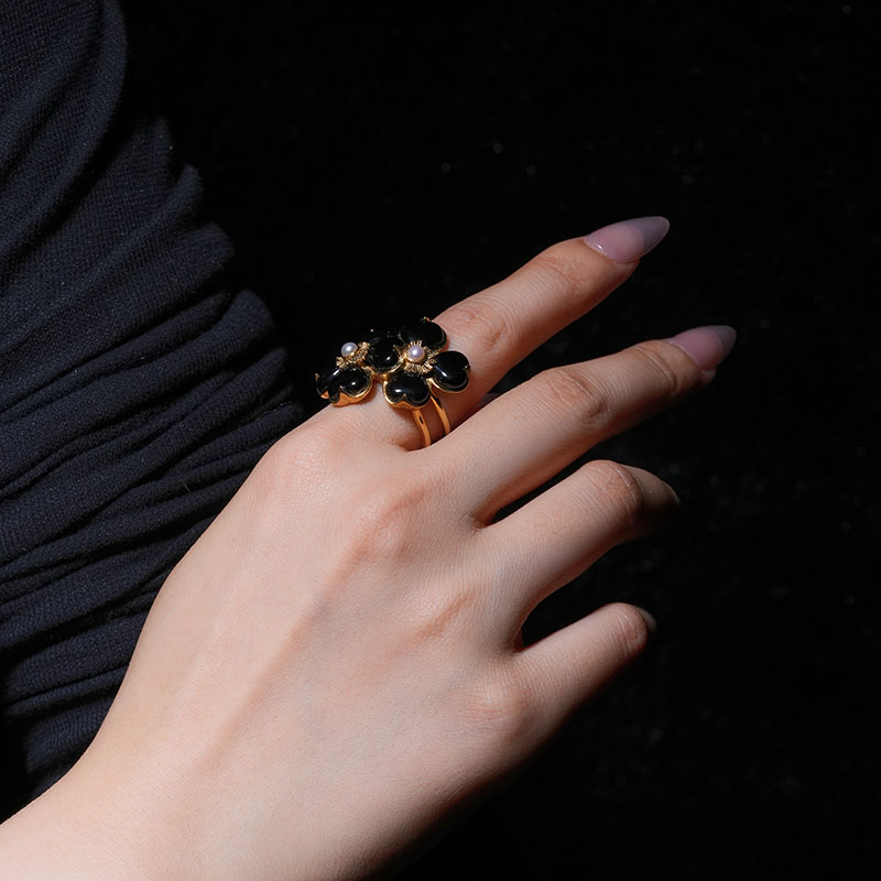 北京仓|Goossens Paris-TREFLE-四叶草 黑色玛瑙 戒指[法国设计师]