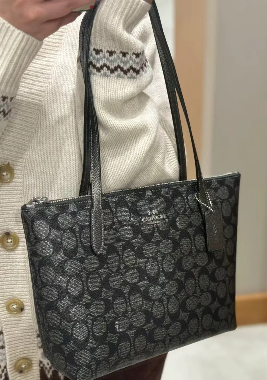 奥莱订单余‼️蔻C典老花公文妈咪包,上身非常显气质,尺寸大小刚刚好,精致又时尚,送人包容量完全够用,日常 手机 钱包 钥匙 太阳伞 充电宝 太阳镜等物品都可以轻松装下。可日常可通勤~