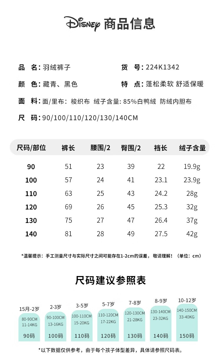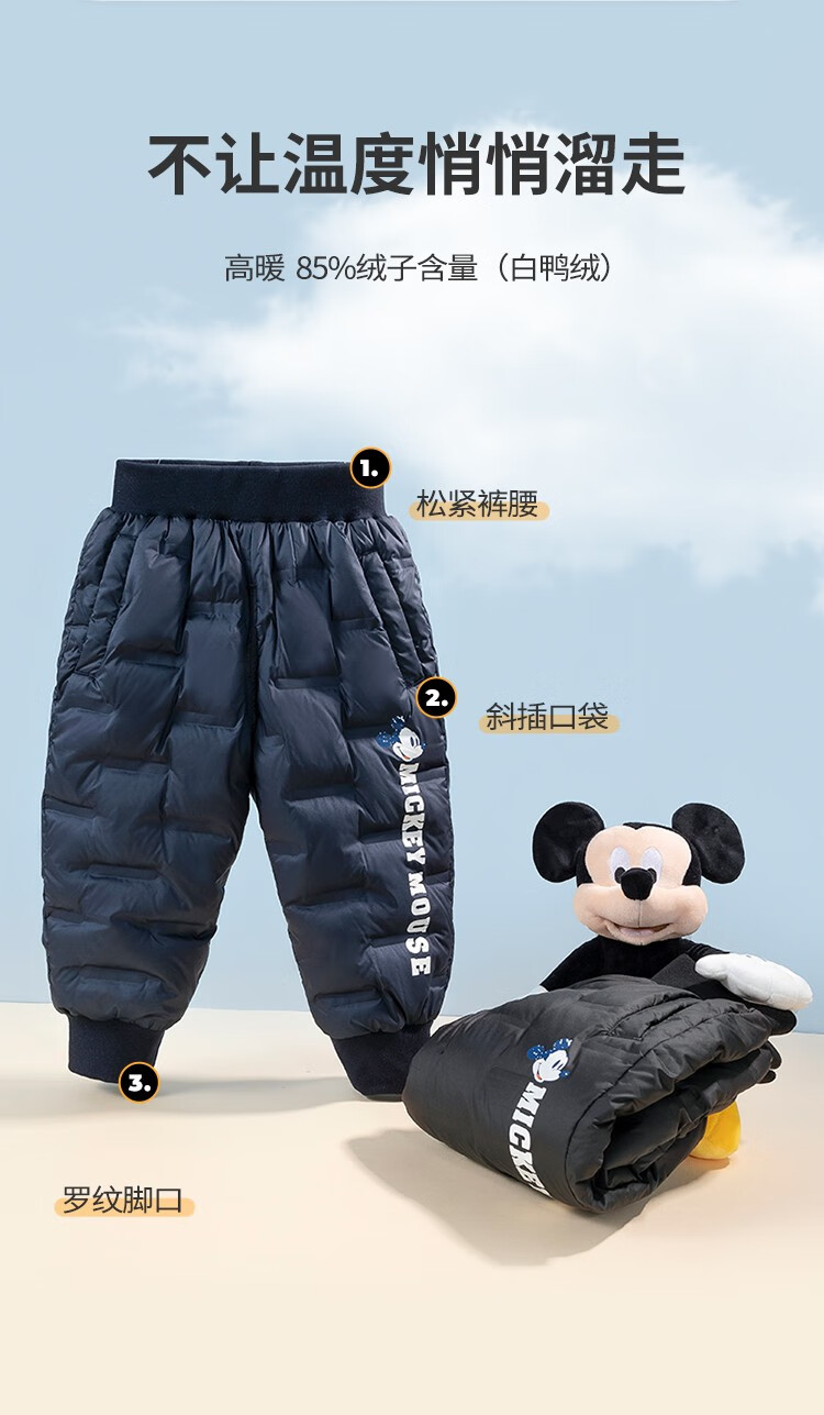 迪士尼童装新品秋冬羽绒保暖裤子男女童休闲长裤224K1342