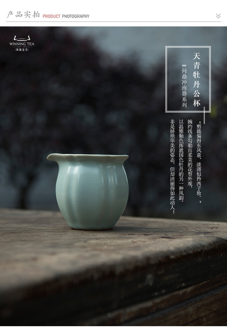 中国问鼎汝瓷天青牡丹公杯 功夫茶具分茶器 陶瓷品茗汝窑泡茶器皿