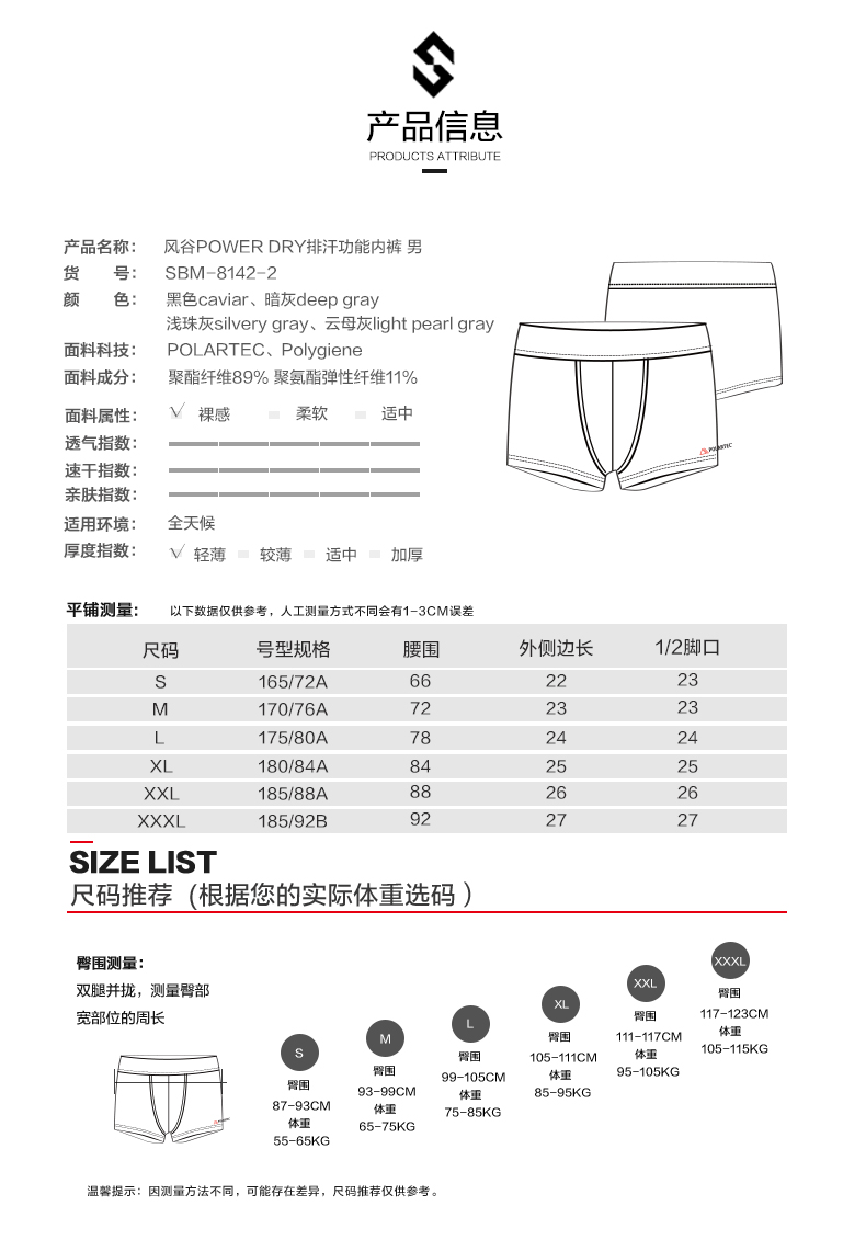 特价SANFOPLUS 速干内裤POLARTEC 透气功能内裤两条(不支持退换)SBM-8142-2