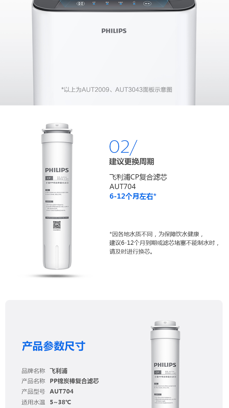 飞利浦(PHILIPS)Erie伊利系列厨下净水器滤芯AUT704(CP) 适用:AUT2009 AUT2010 AUT3043 AUT2011 AUT3045