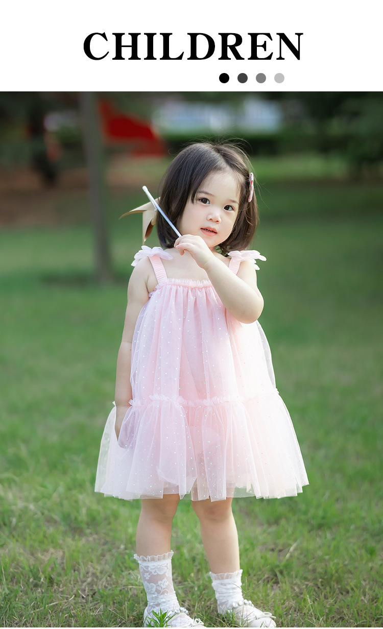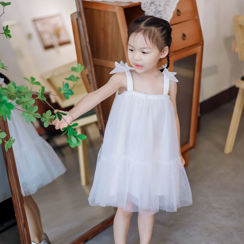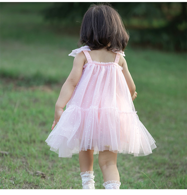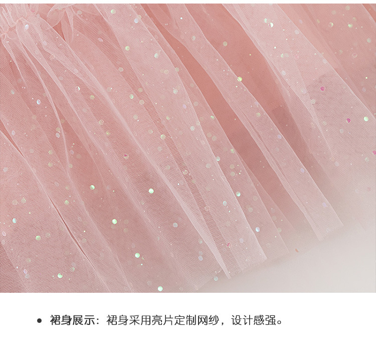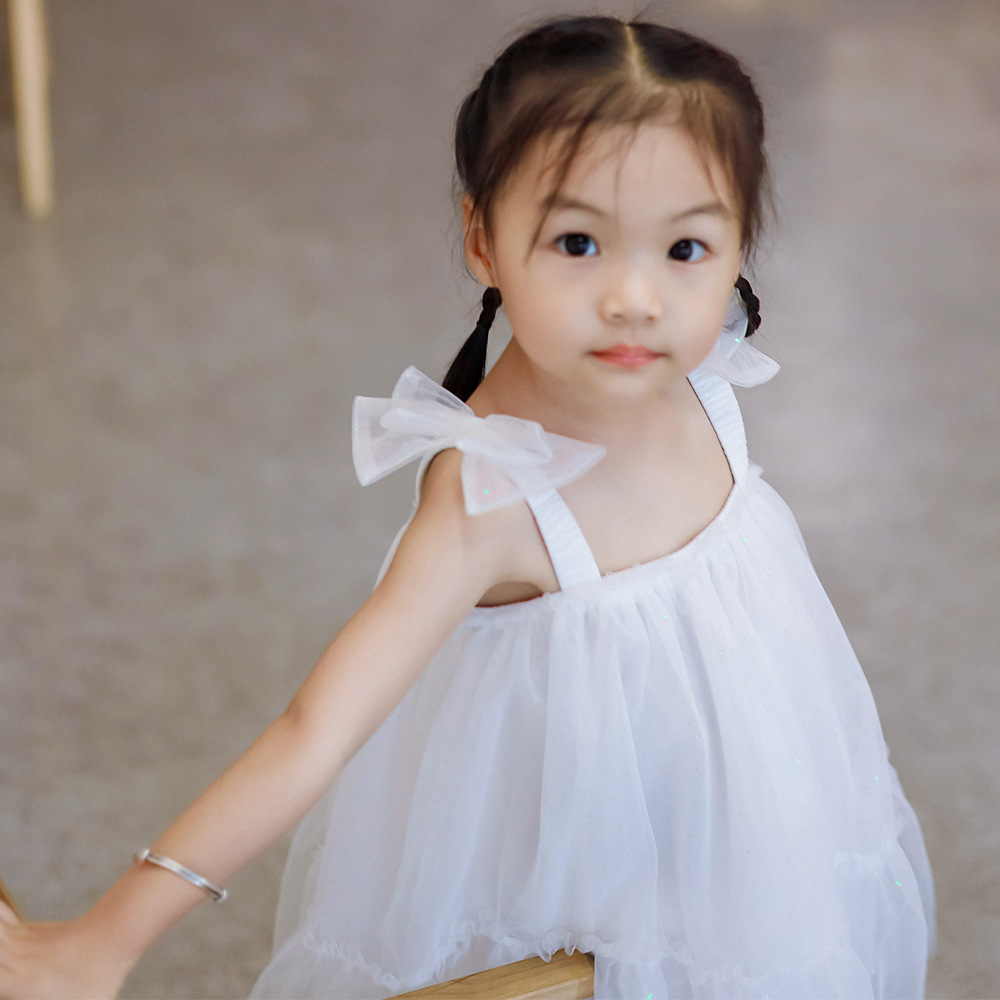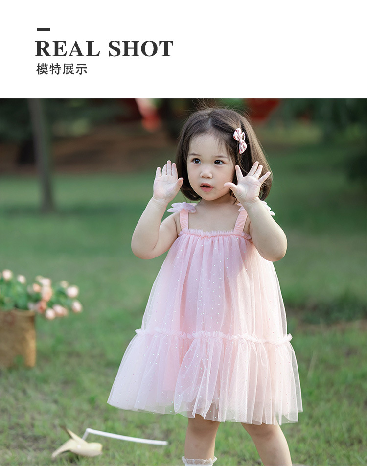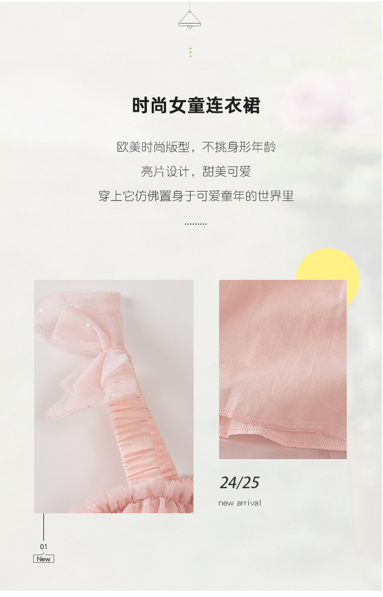 【蝴蝶结亮片吊带连衣裙】女童亮片吊带裙夏薄款2024新款蝴蝶结公主裙3-6岁儿童洋气连衣裙