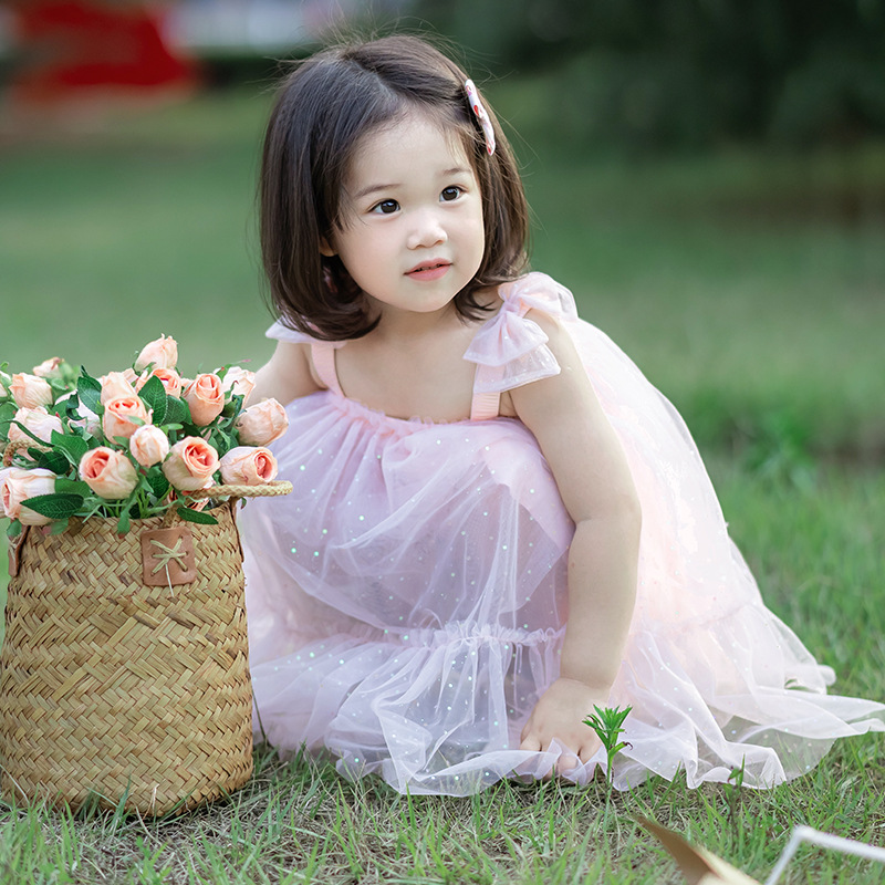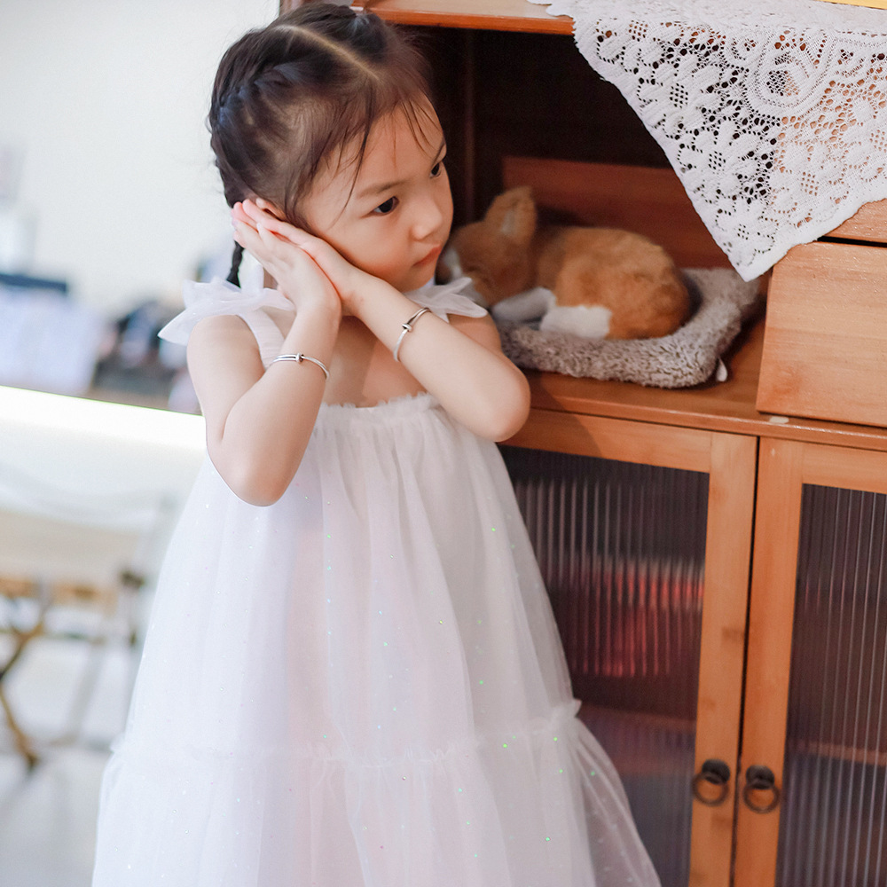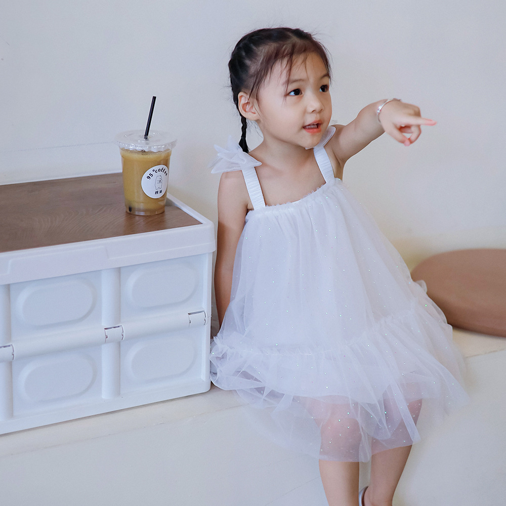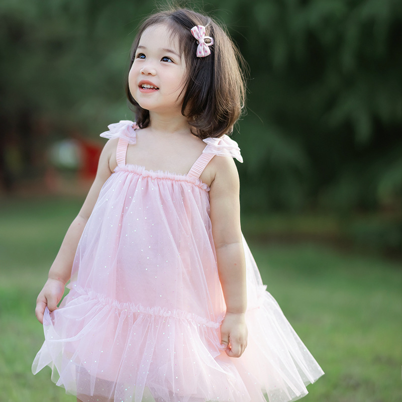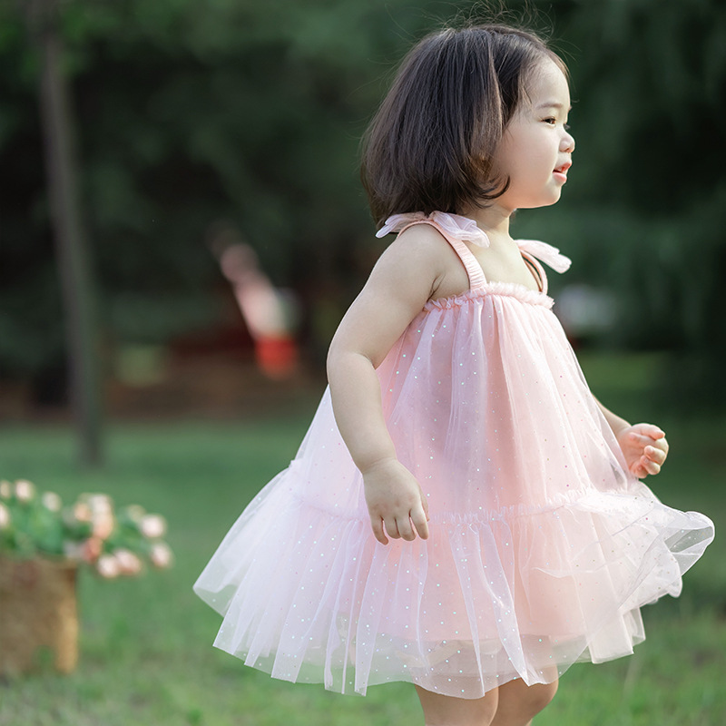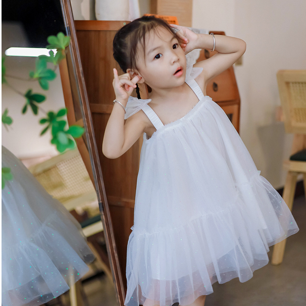 【蝴蝶结亮片吊带连衣裙】女童亮片吊带裙夏薄款2024新款蝴蝶结公主裙3-6岁儿童洋气连衣裙