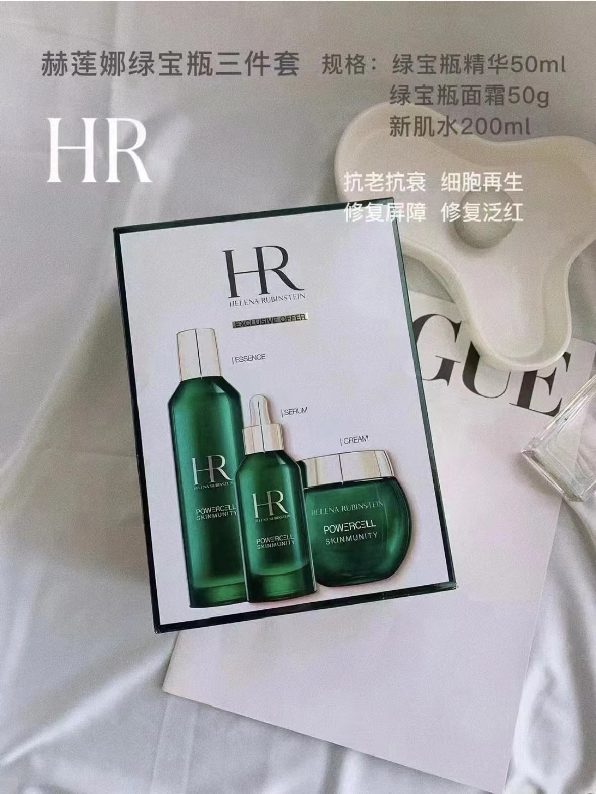 【HR绿宝瓶三件套】配专柜手提袋 高端礼物免税店版本活新生套装HR套装终于来了 HR 赫莲娜绿宝瓶3件套有悦活蓄能爽肤水(200ml)小绿瓶精华(50ml)小绿瓶面霜(50ml)超超超💯值!🔘 抗皱、修复、补水、去黄,全球每3分钟即售出1瓶的口碑绿宝瓶精华系列!全效强化肌肤,植物原生细胞,再生及防御配方,平滑粗燥肤质,绽放健康焕活亮采,肌肤触感柔滑细! 15日后,你就会发现肌肤展现更年轻状态(不支持试用 塑封拆毁概不退换)退货请手提袋一并退回谢谢!
