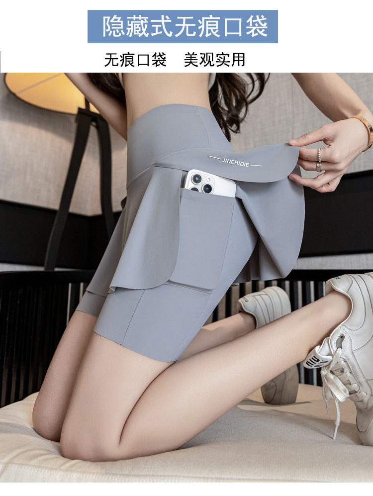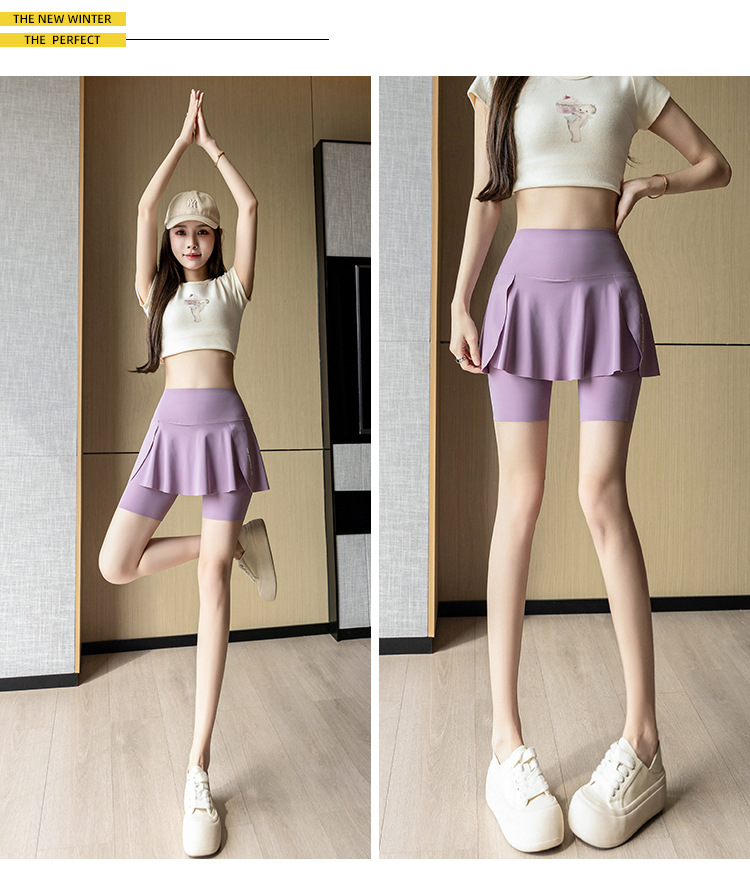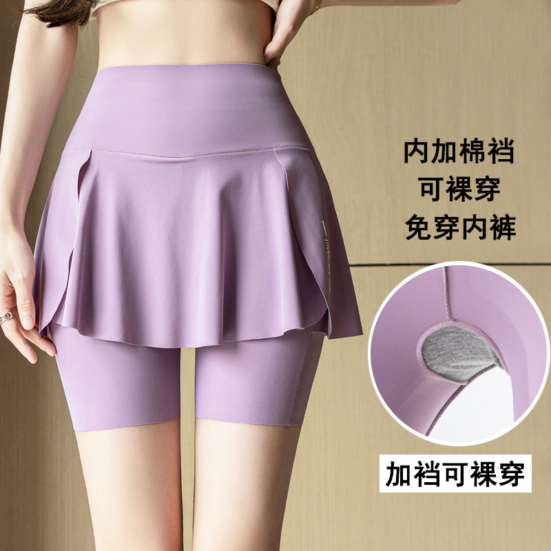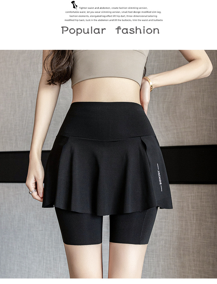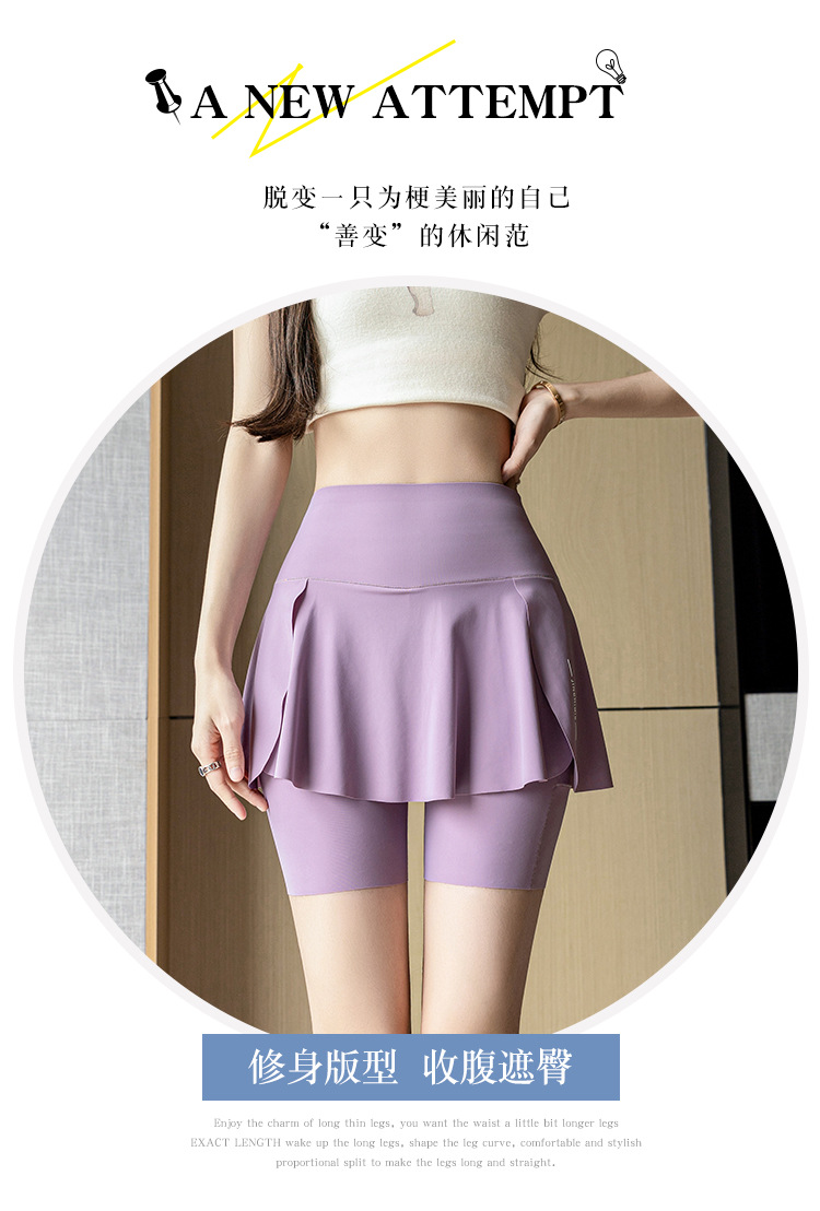 【高腰假两件❗鲨鱼裤/芭比裙裤】超显身材穿出“小蛮腰”无痕胶高弹力松紧「双层微压无痕工艺」360°弹力收腹,亲肤舒适骑行裤+健身+休闲,夏外穿弹力大码空调裤裸感瑜伽打底裤子L