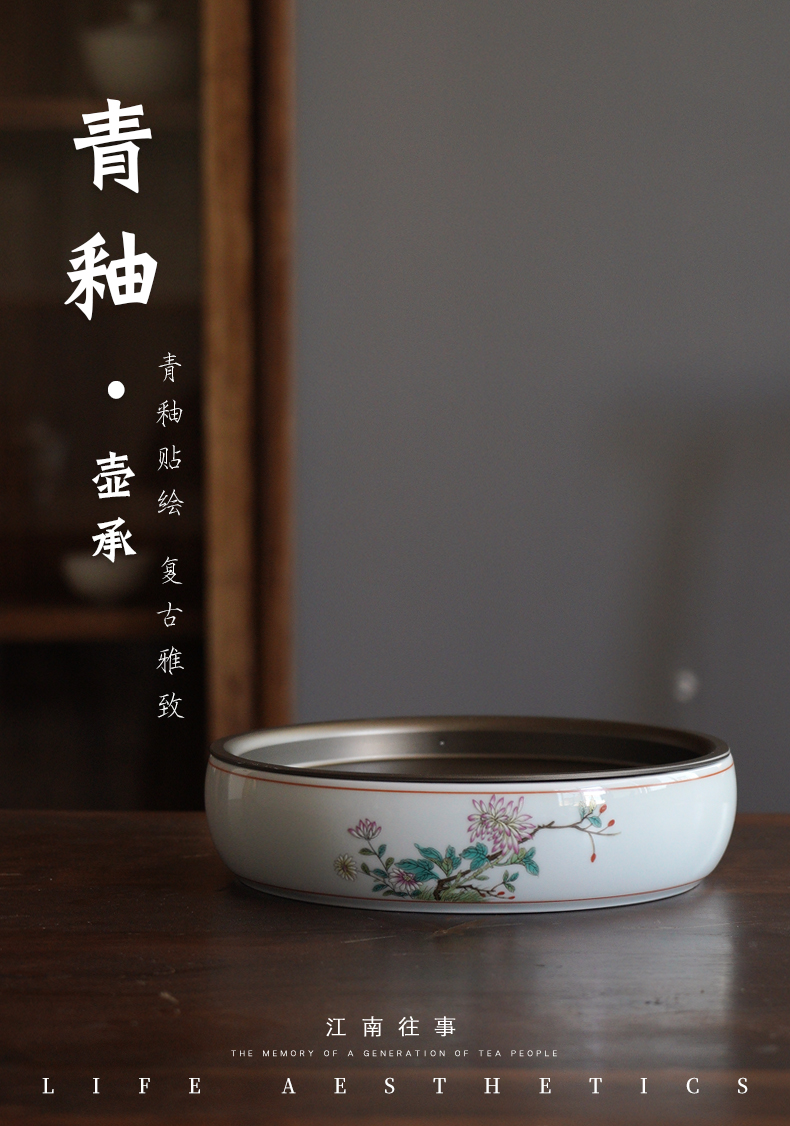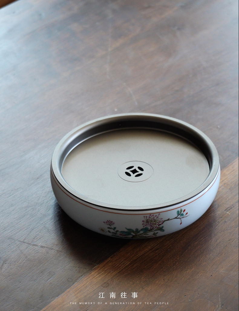 永利汇干泡台陶瓷茶具仿古釉上彩功夫茶具小茶台茶盘壶承干泡盘