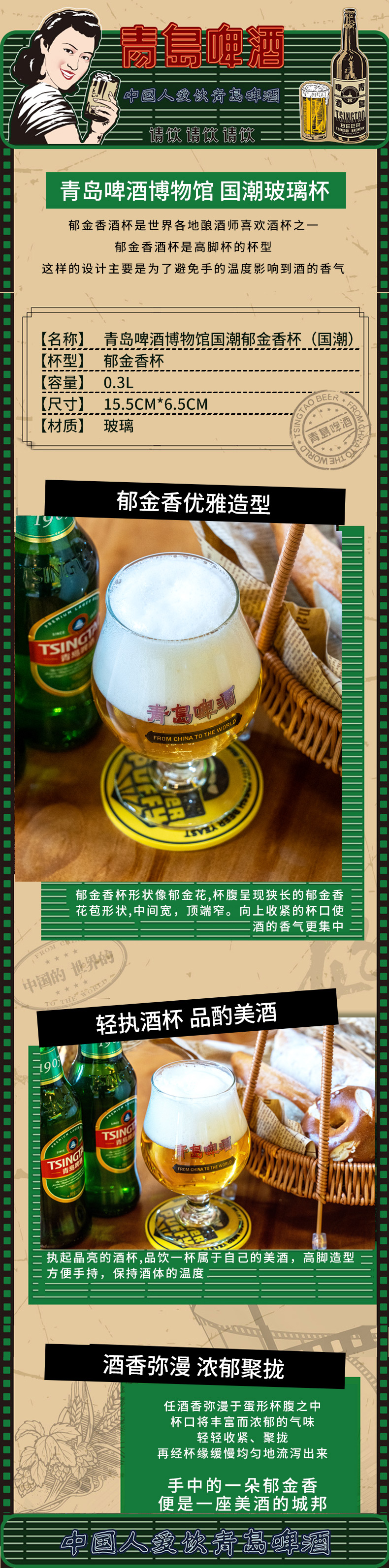 【青岛啤酒博物馆】国潮郁金香啤酒杯0.3L 青岛啤酒 官方文创