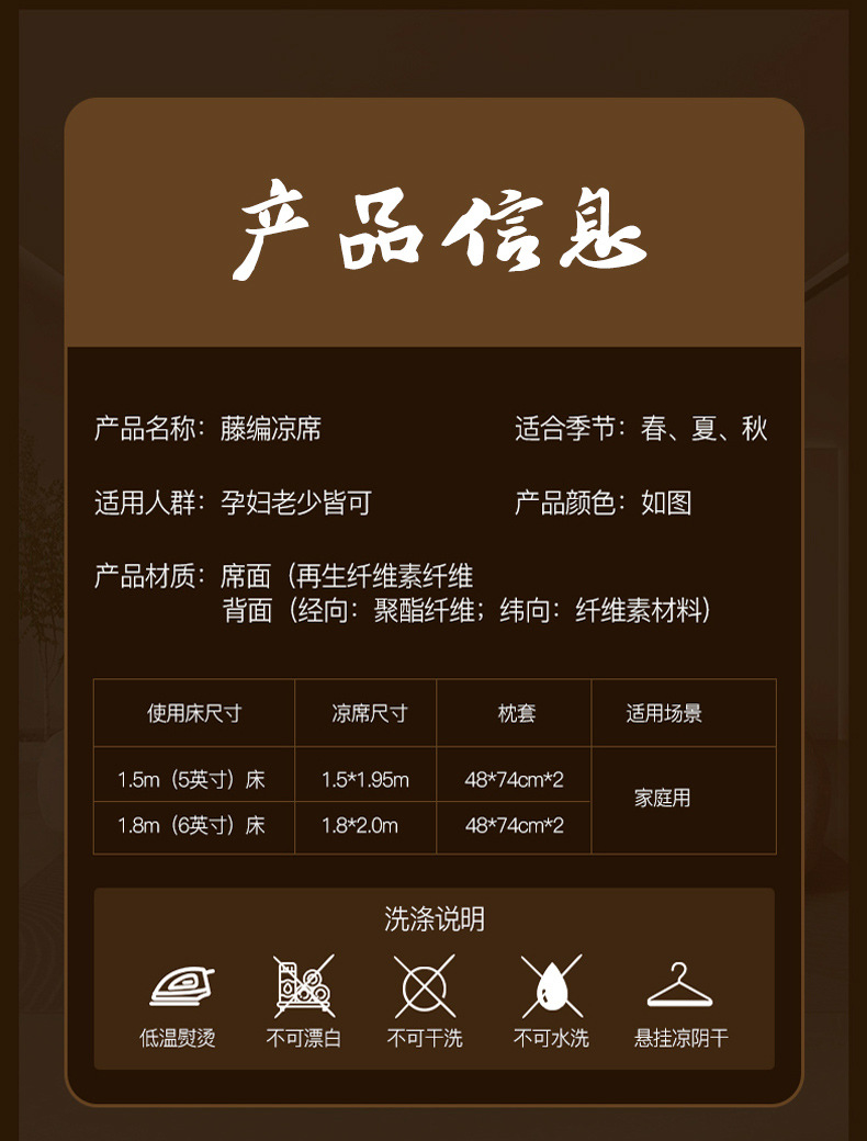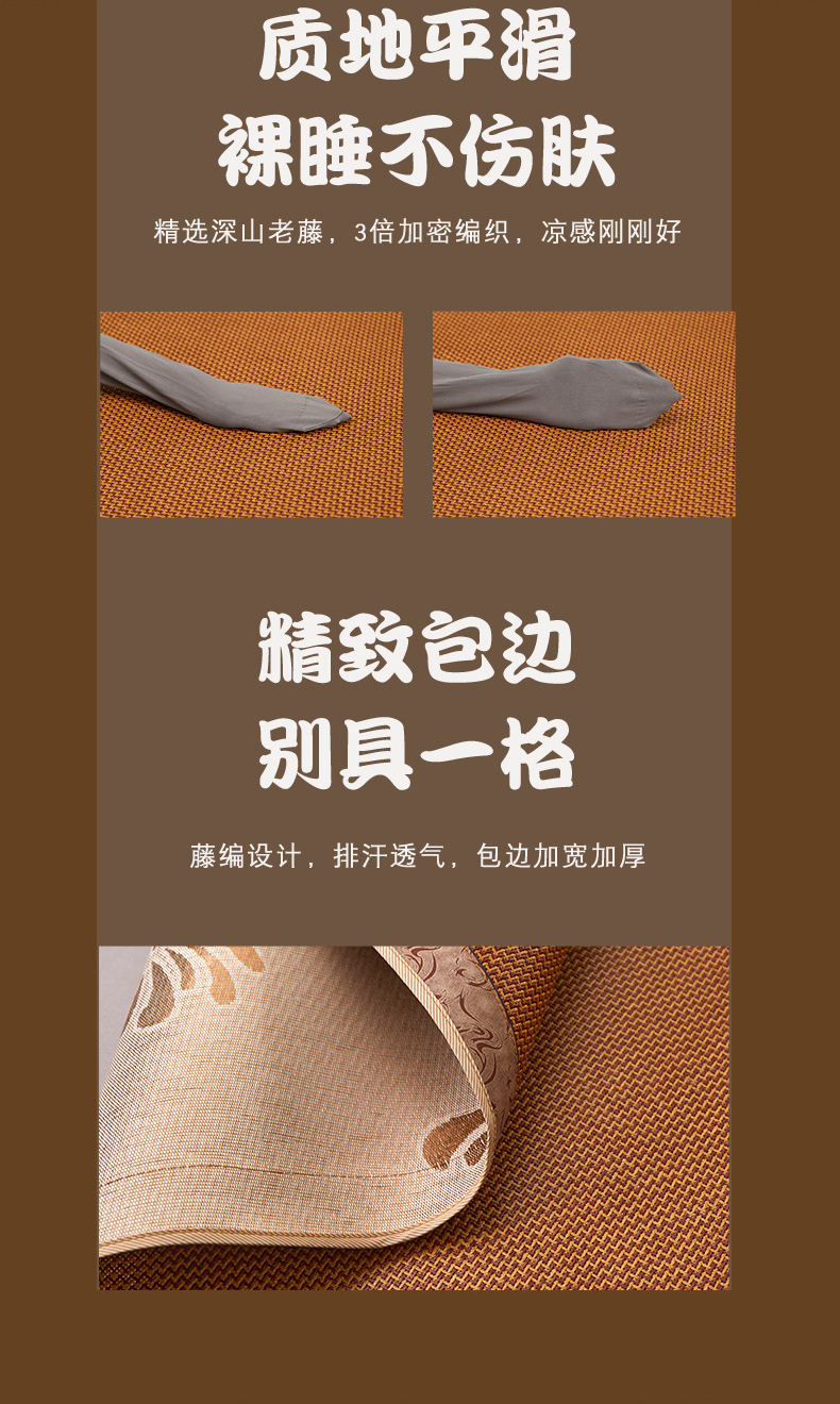 【严选品质】席之南夏季加厚双面凉席 植物选料 拒绝色素添加 加厚高档藤竹