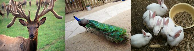 到我们的小动物园来吧,这里不仅有一群麋鹿 ,还有难得一见的牦牛 、光彩照人的孔雀、可亲可爱的小白兔~