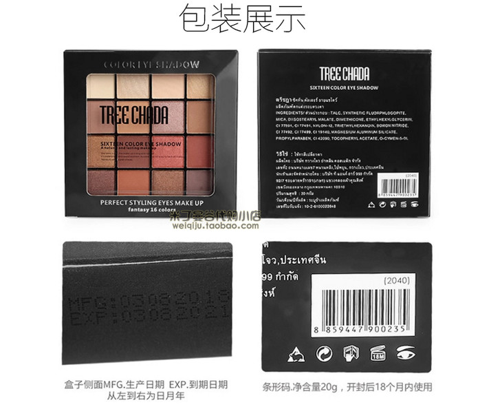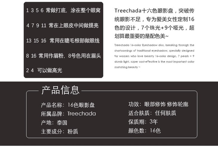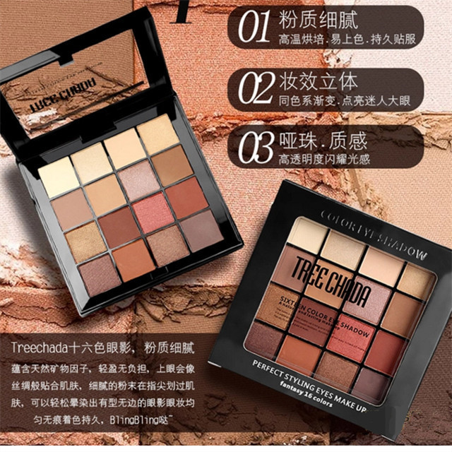 【哑光+珠光】泰国 treechada 少女系16色眼影盘 百搭不晕染