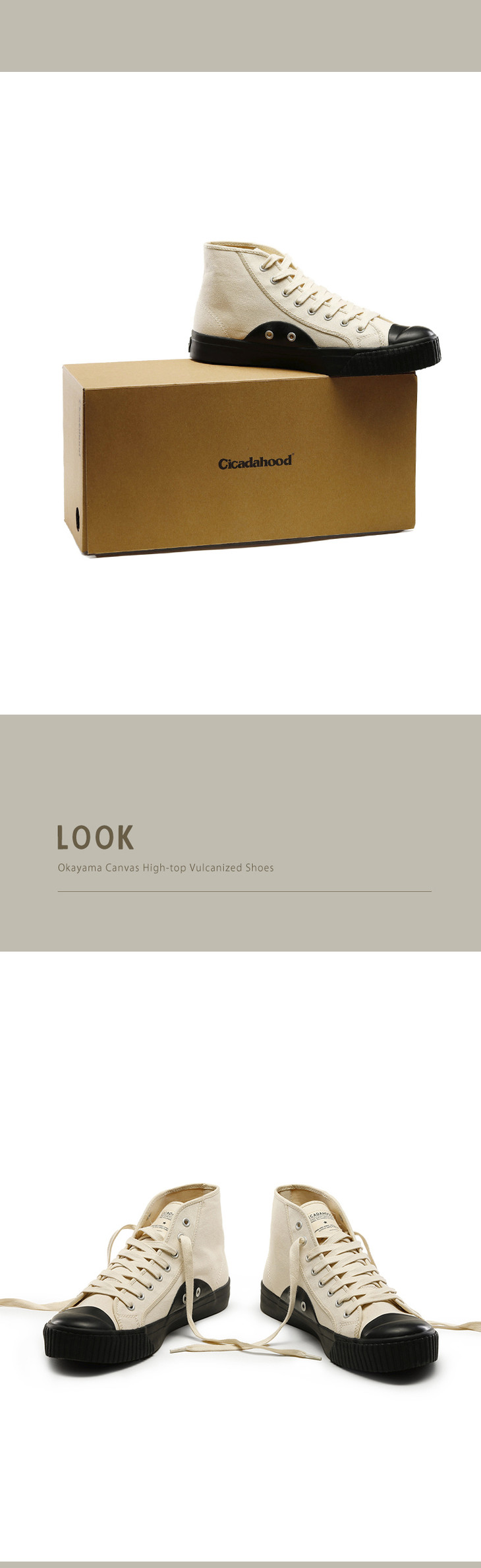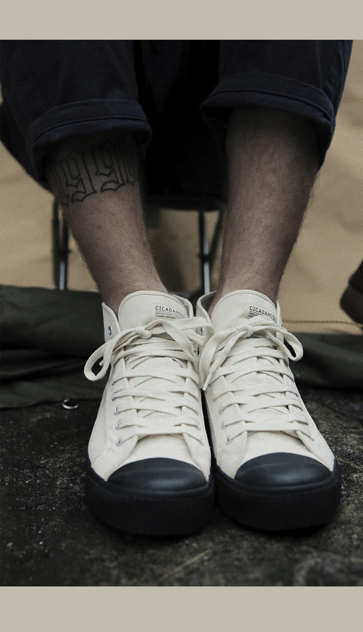 Cicadahood日本冈山帆布高帮硫化鞋 黑白款 原创 复古工装帆布鞋