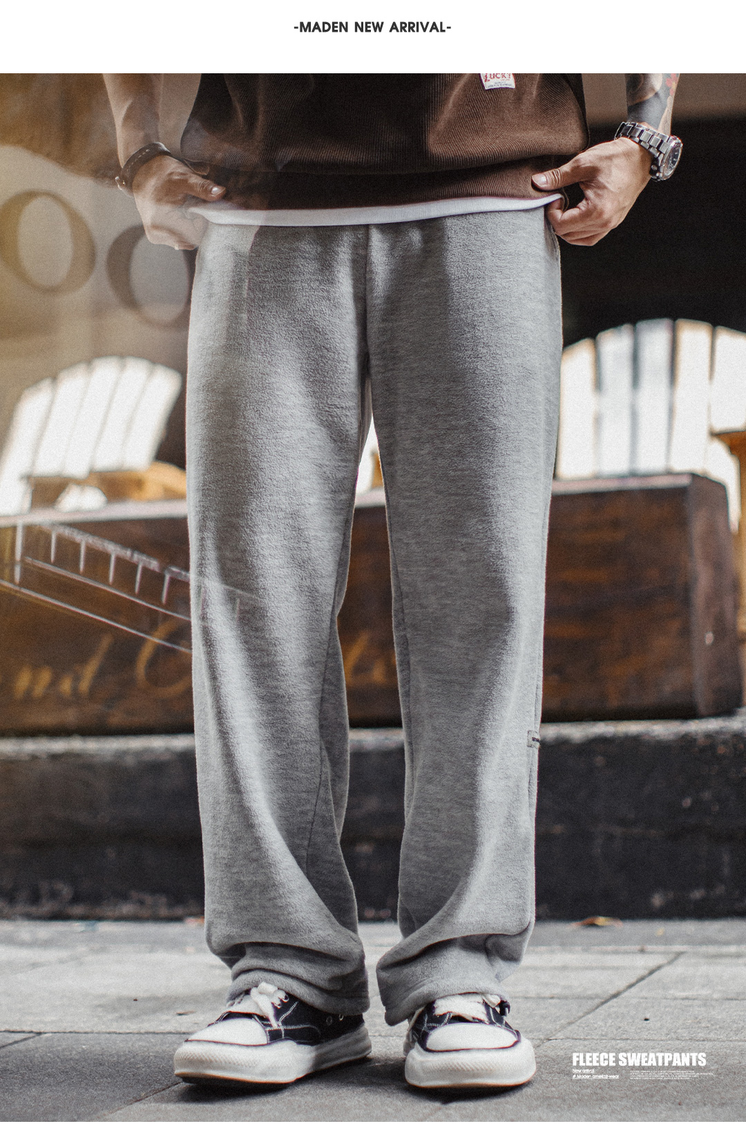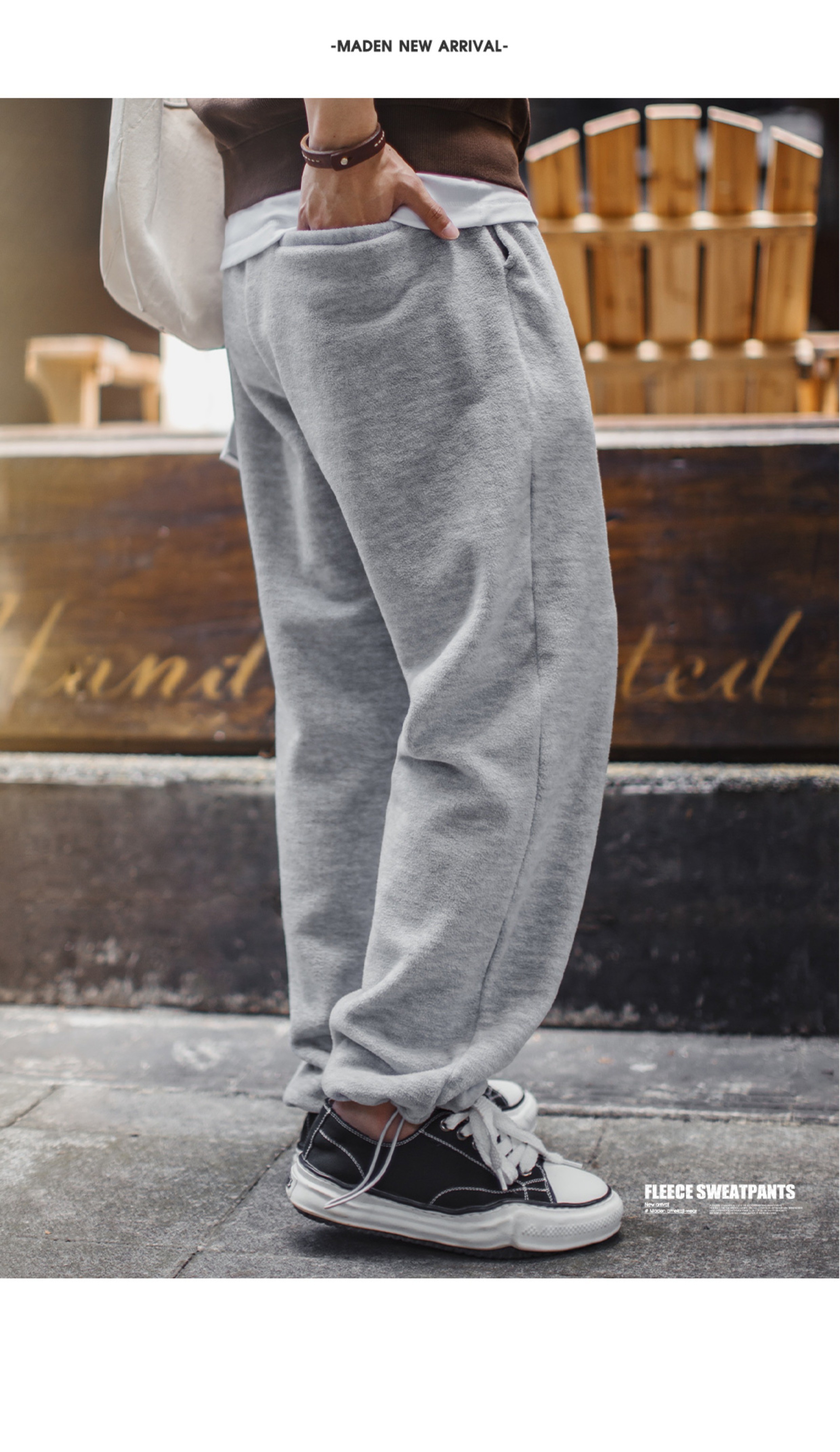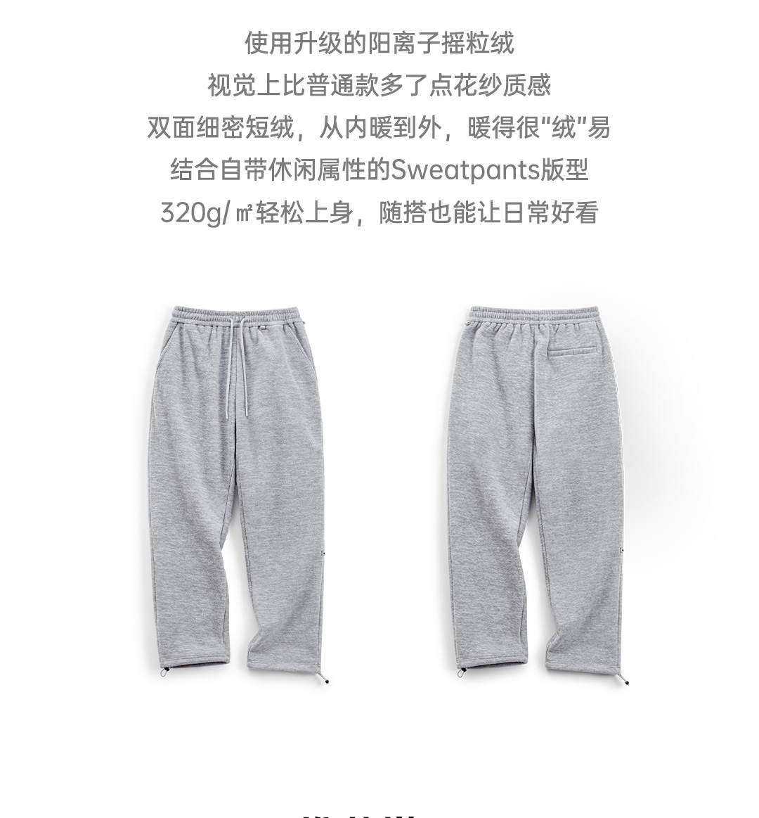 马登工装美式休闲灰色摇粒绒卫裤加绒直筒松紧腰束脚长裤子男秋冬