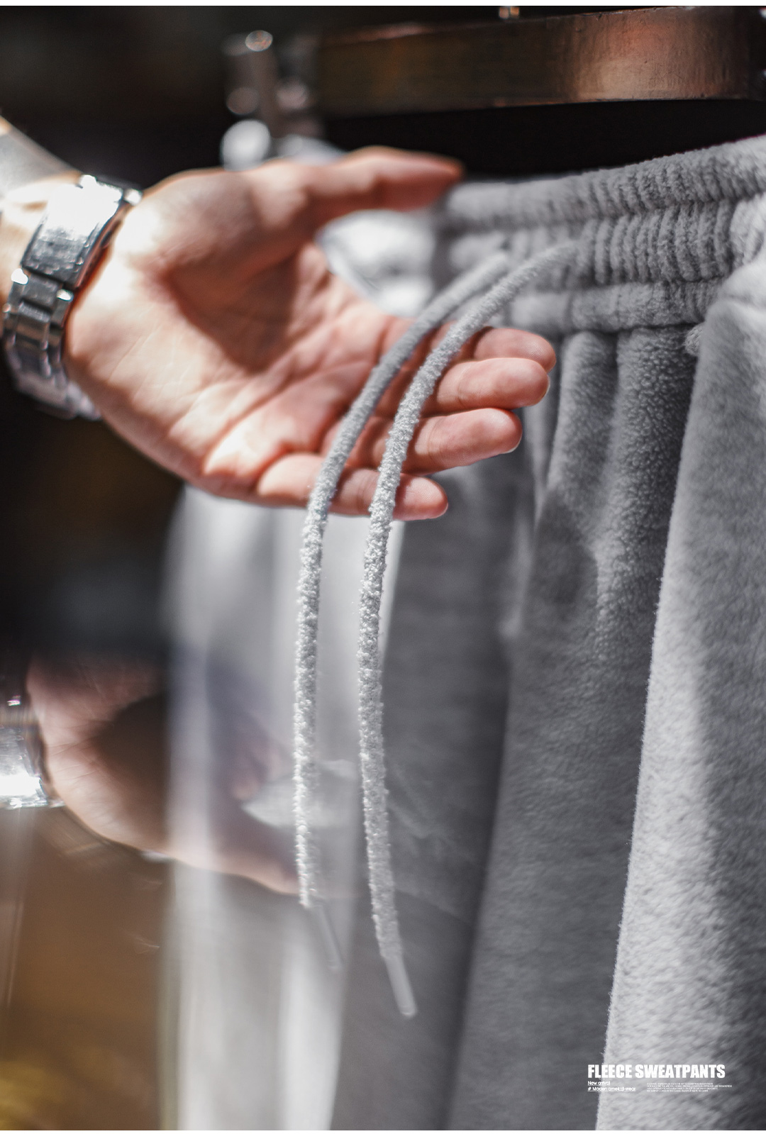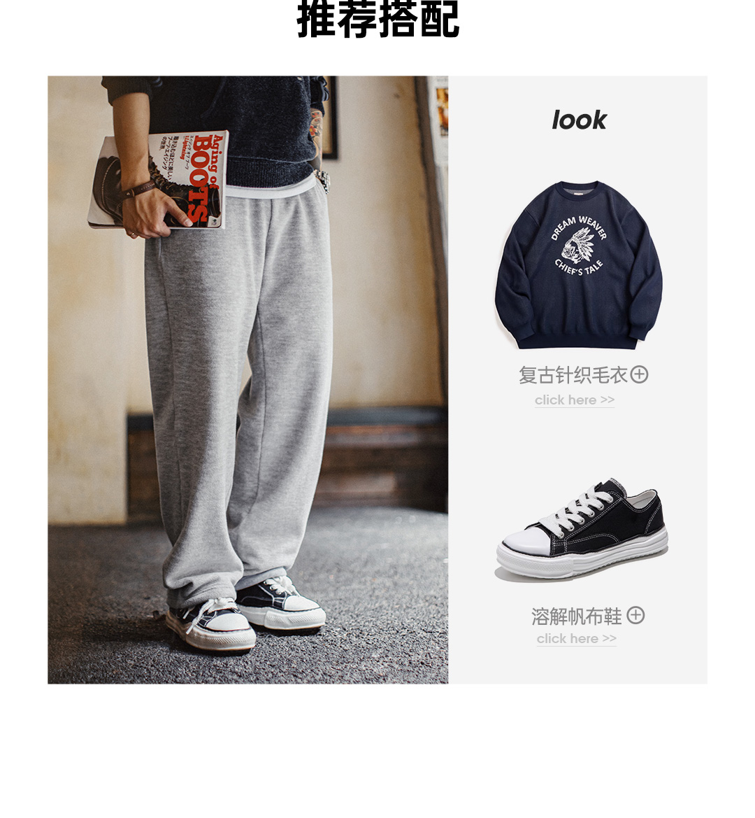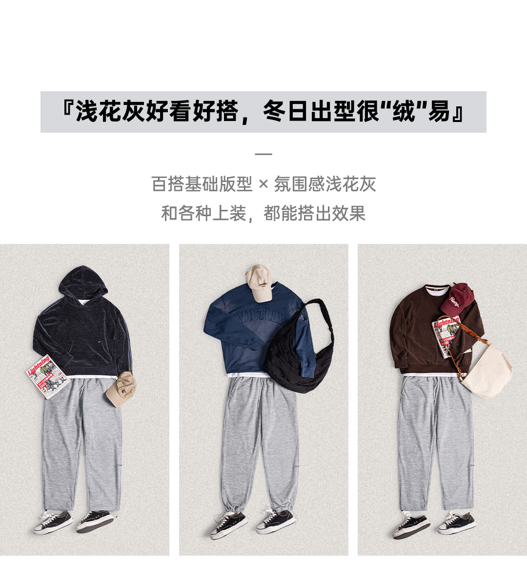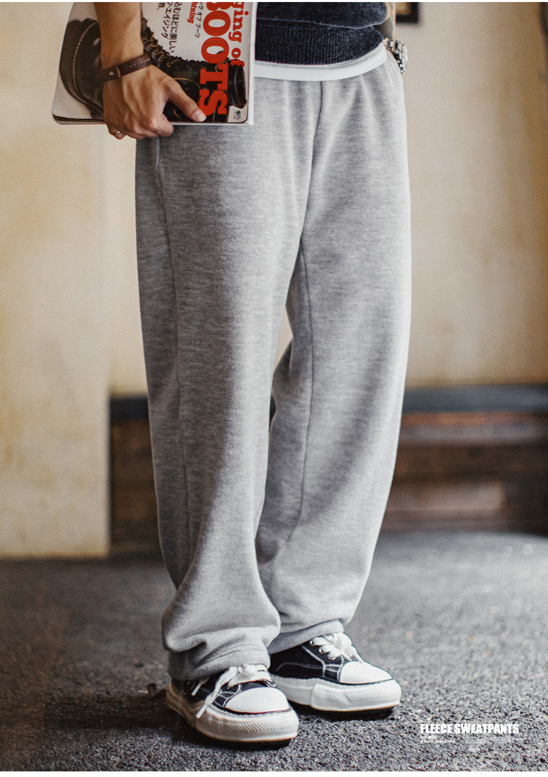 马登工装美式休闲灰色摇粒绒卫裤加绒直筒松紧腰束脚长裤子男秋冬