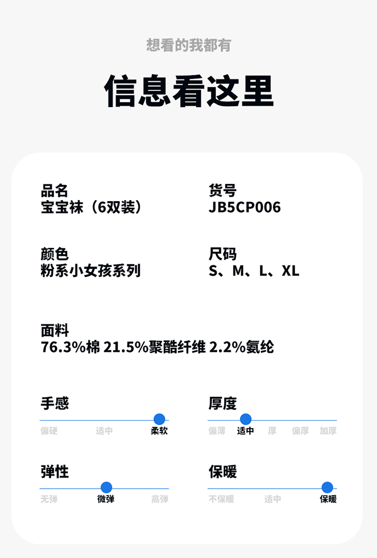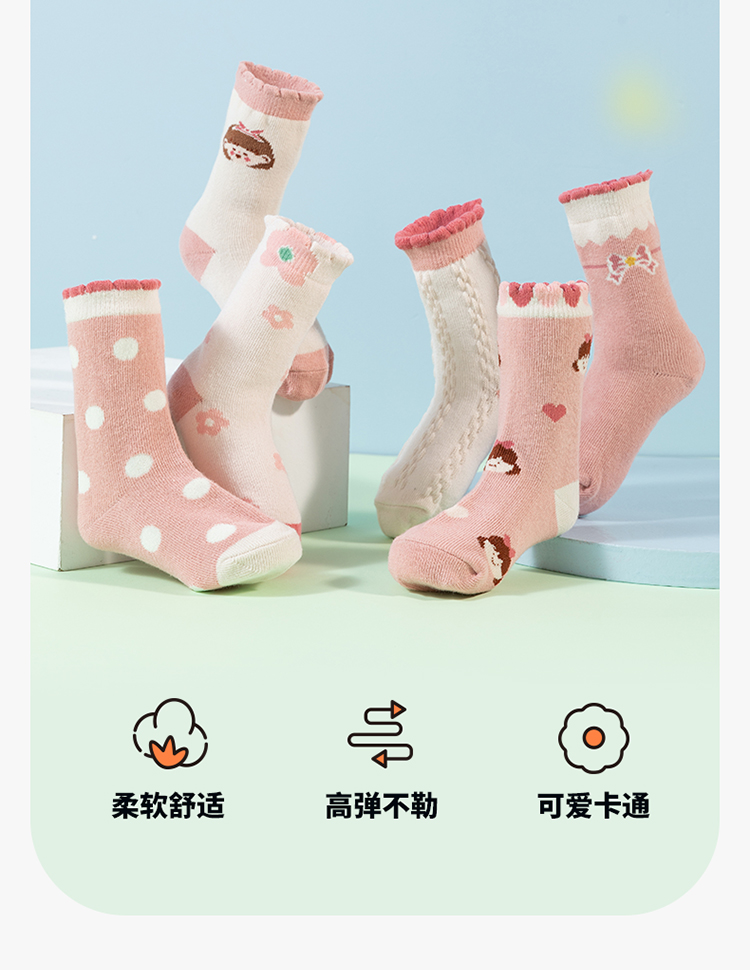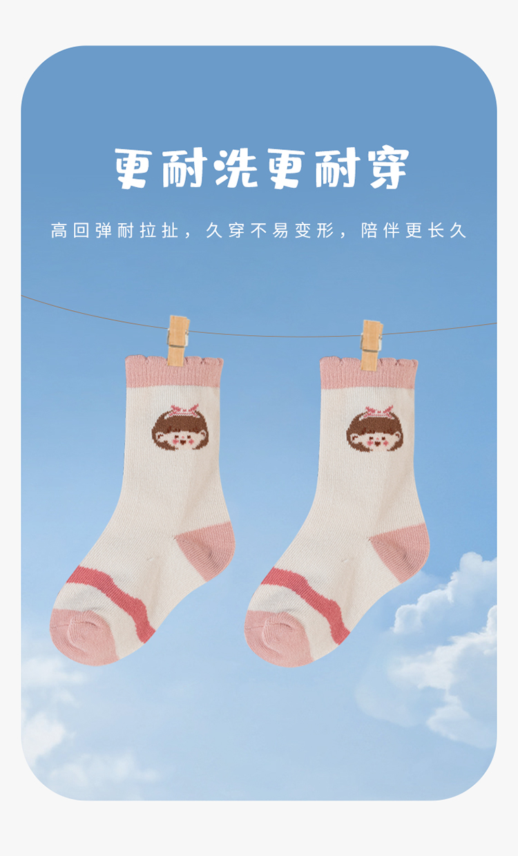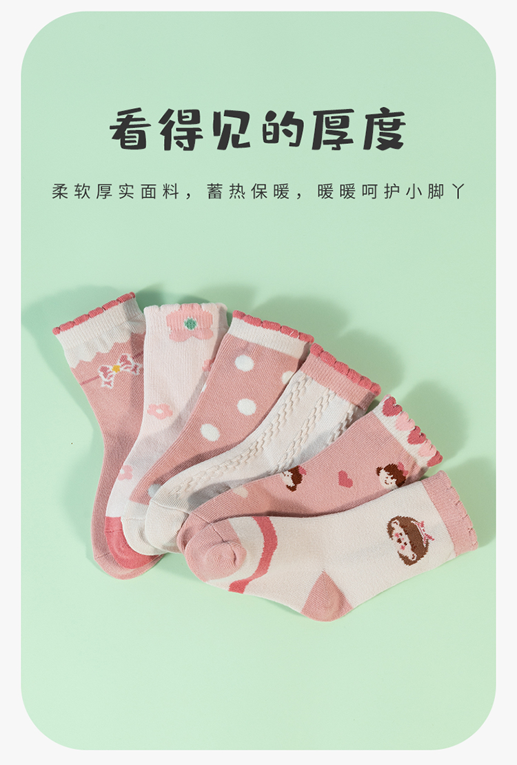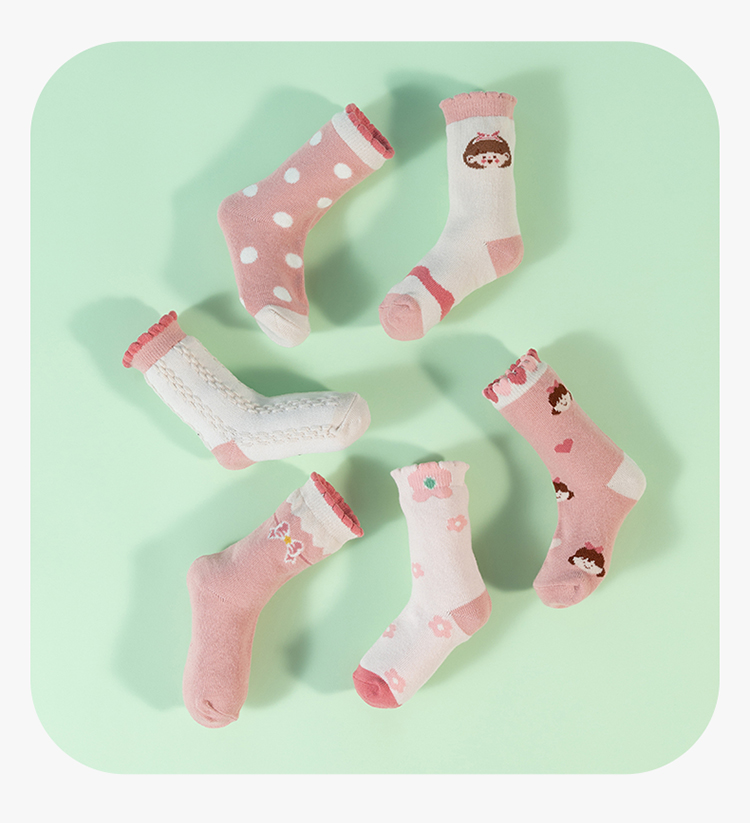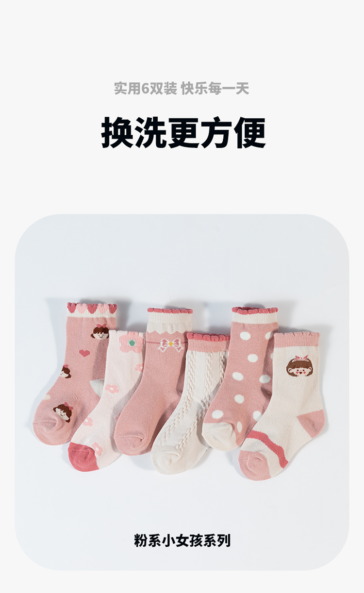 贝贝怡女童袜子秋季新款卡通儿童袜子透气宝宝中筒袜(6双装)JB5CP006