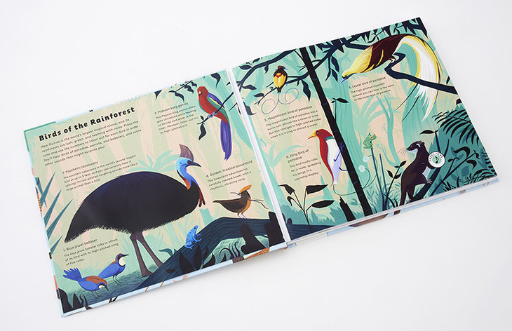 Travel the world with the Sounds of Nature series - press the note in each of the 10 habitats to hear vivid recordings of over 60 different bird sounds.