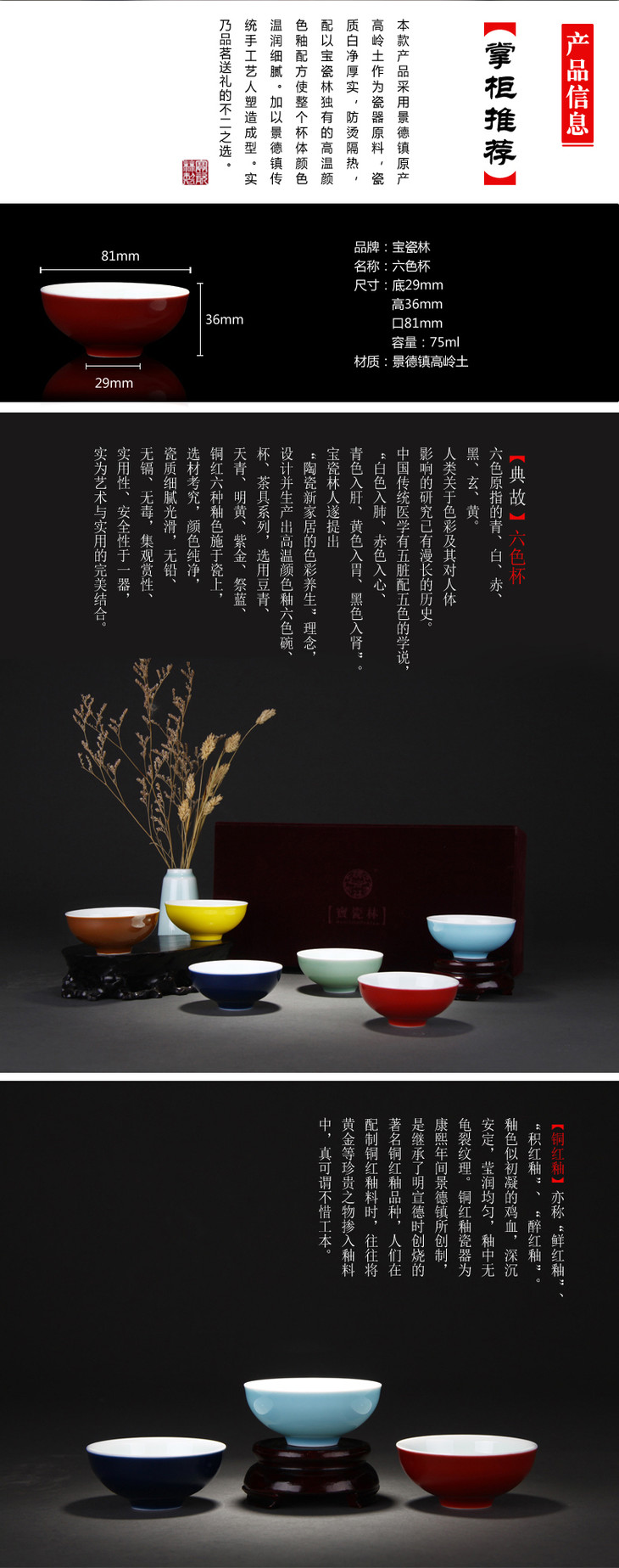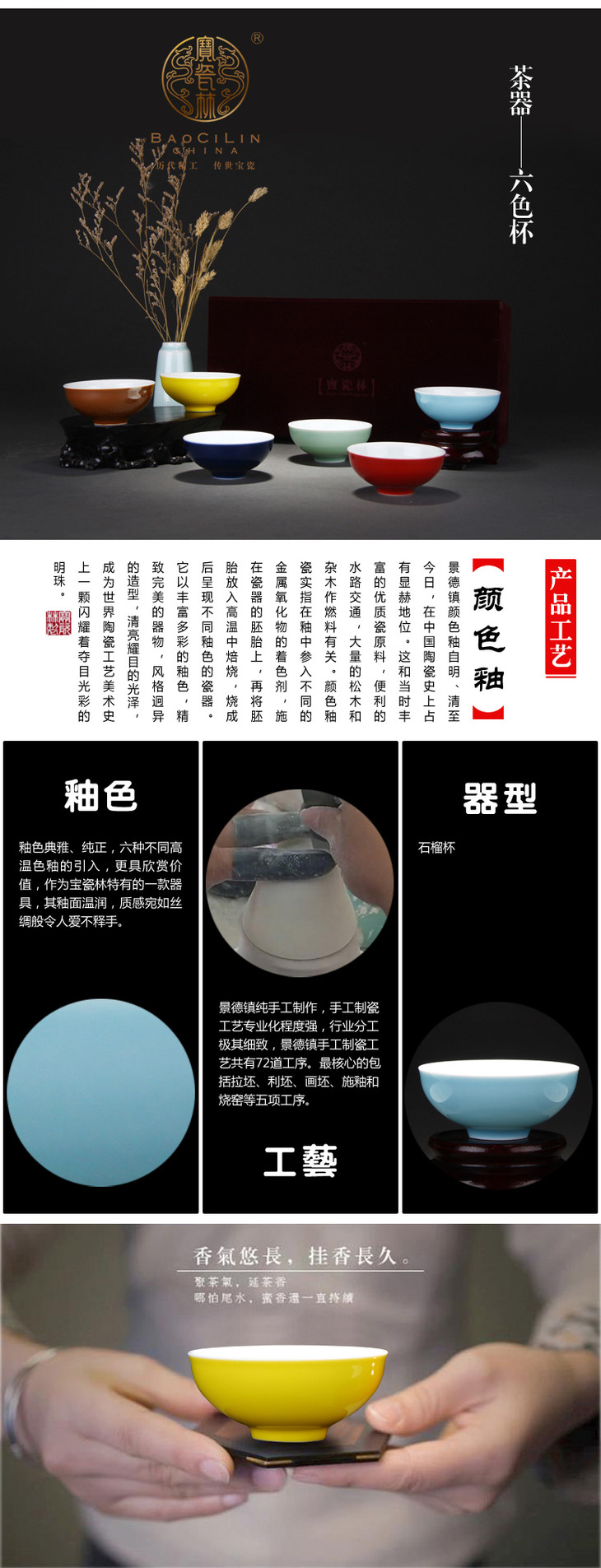 【宝瓷林】颜色釉6头功夫茶具天青/豆青/明黄/紫金/玫瑰红/祭蓝