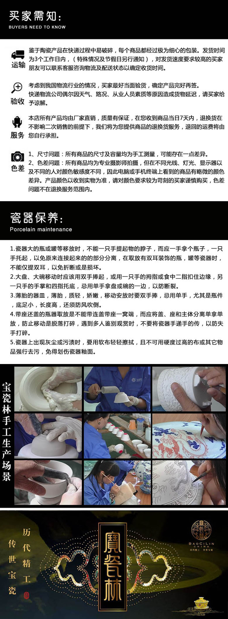 宝瓷林,2008年创立,是一家将传统清宫官窑制瓷技艺,移植于当代家居日用瓷品上的景德镇陶瓷骨干企业,是当下唯一一家代表“千年瓷都-景德镇”走向全球的陶瓷连锁品牌,被誉为陶瓷界的“国酒茅台”。