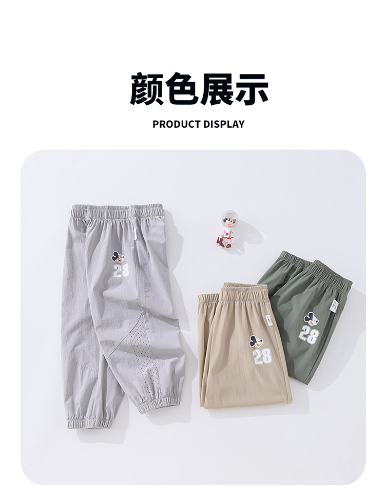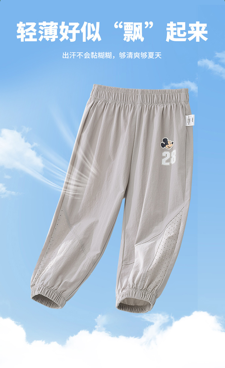 迪士尼童装儿童运动休闲裤男童轻薄透气长裤夏季宝宝防晒防蚊裤ZD2EK013