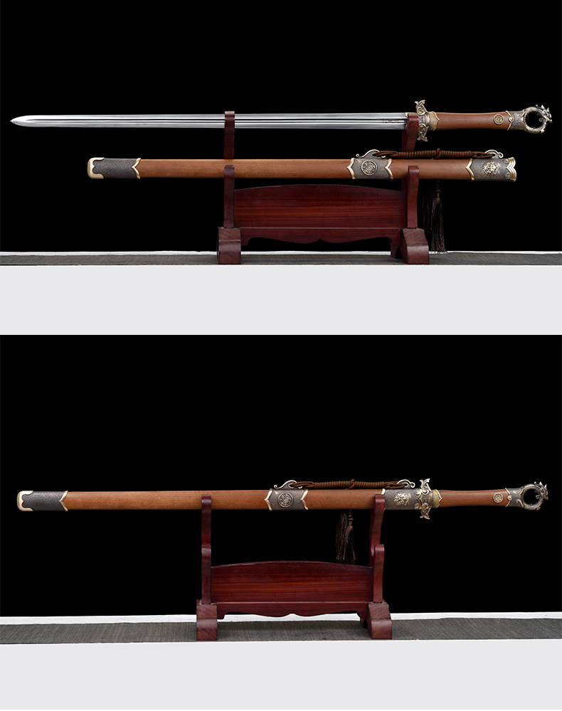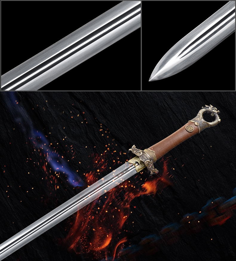 龙门环首刀剑 花纹钢一体剑 汉唐刀剑 龙泉沈广隆收藏剑 未开刃