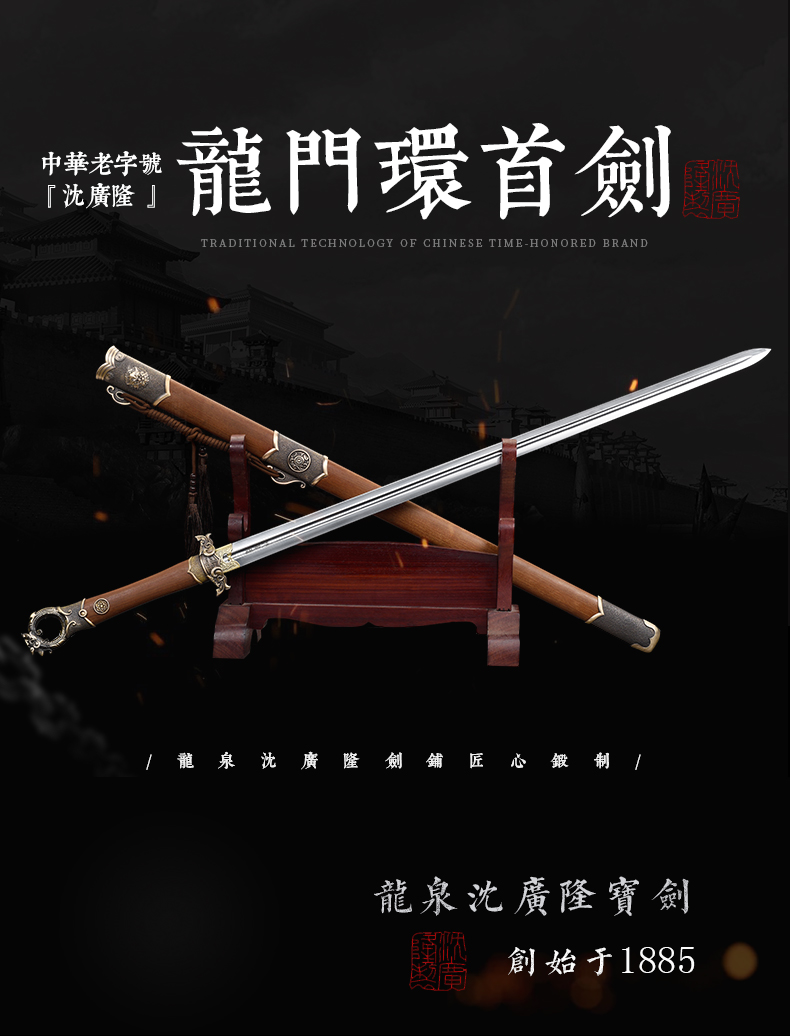- 龙泉沈广隆剑舖创始于1885年(清光绪)位于浙江省龙泉市,是当地唯一一家“子承父业”一脉相承的中华老字号宝剑生产企业,是国家级非物质文化遗产龙泉宝剑项目保护单位,并以“天下第一剑”闻名于海内外....