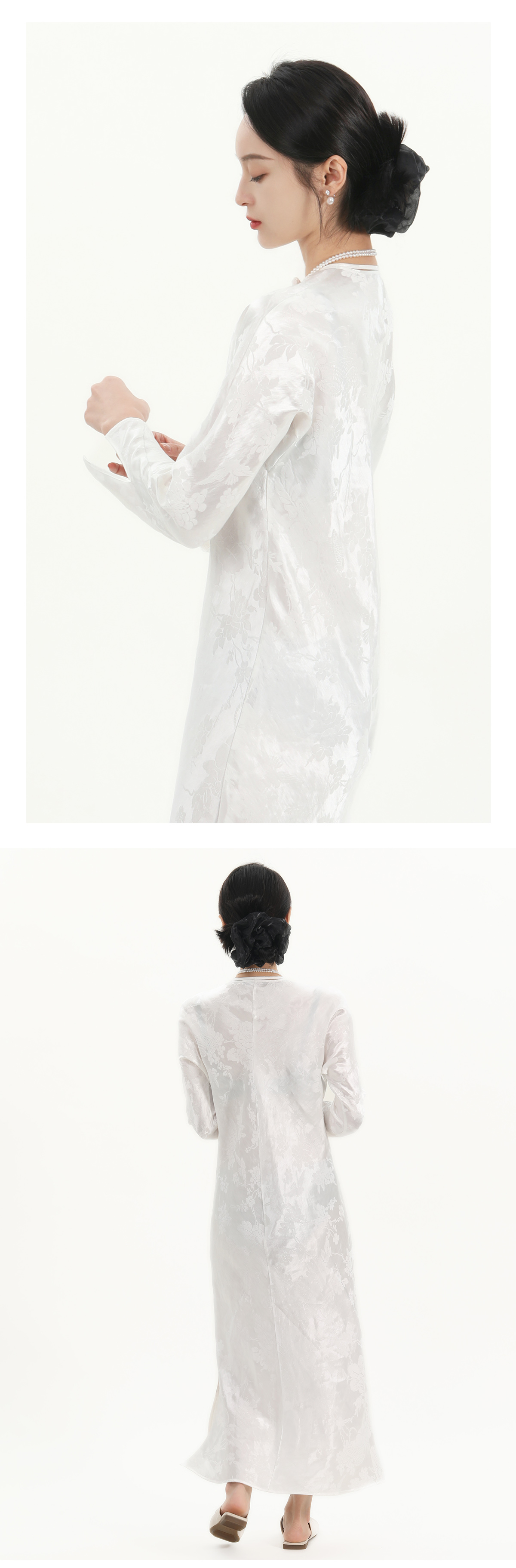 微瑕秒杀 |盛唐牡丹|真丝丝麻雅致中式改良旗袍连衣裙[特价品](特殊商品不退不换)