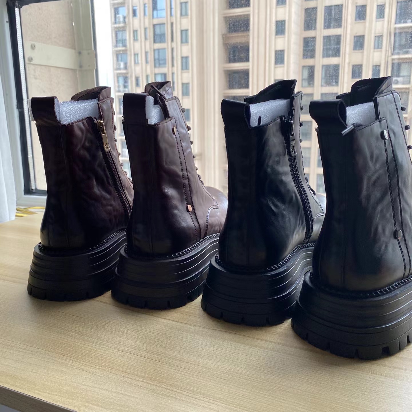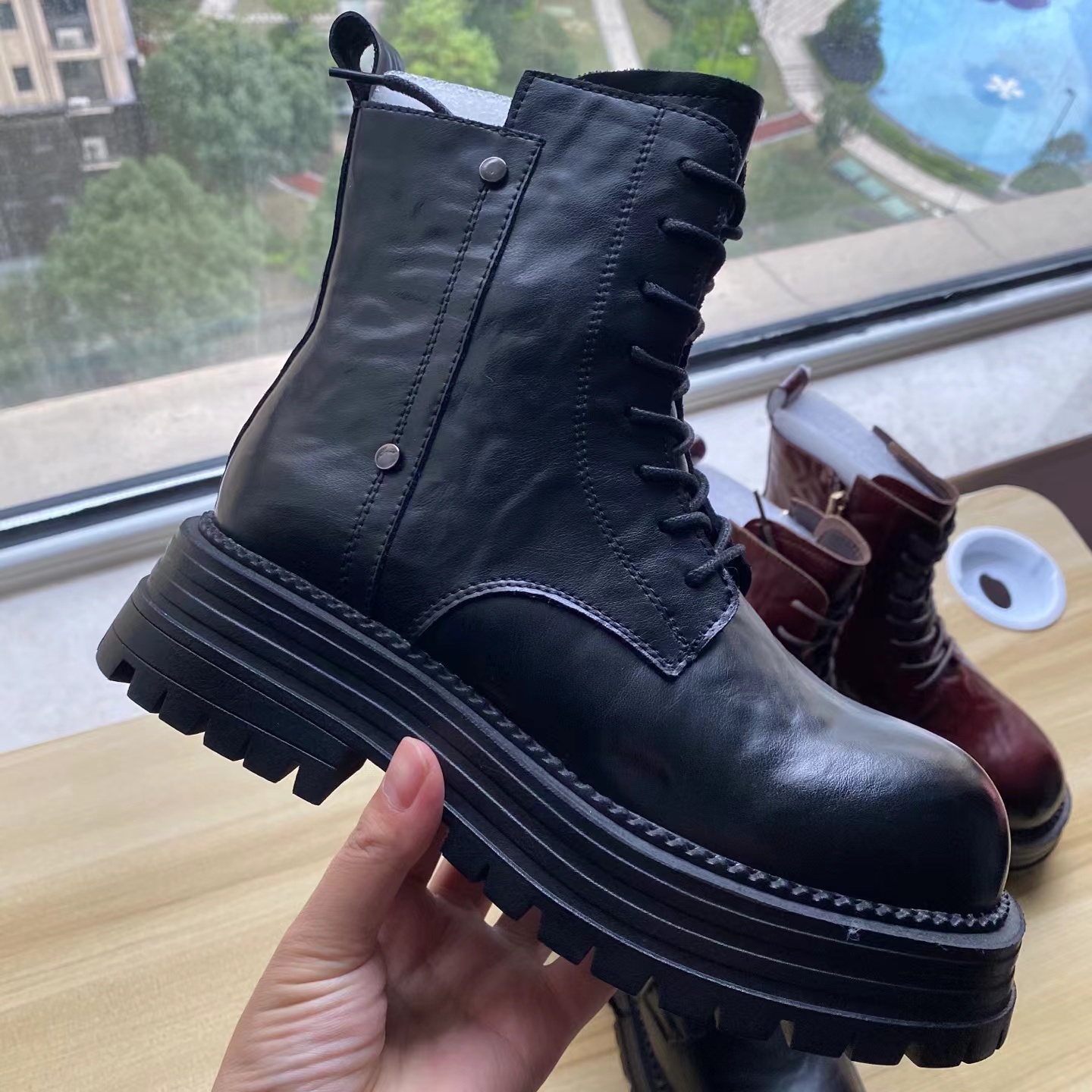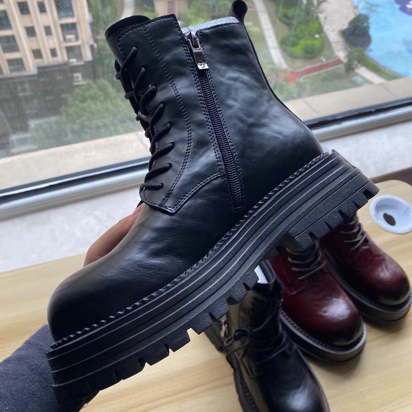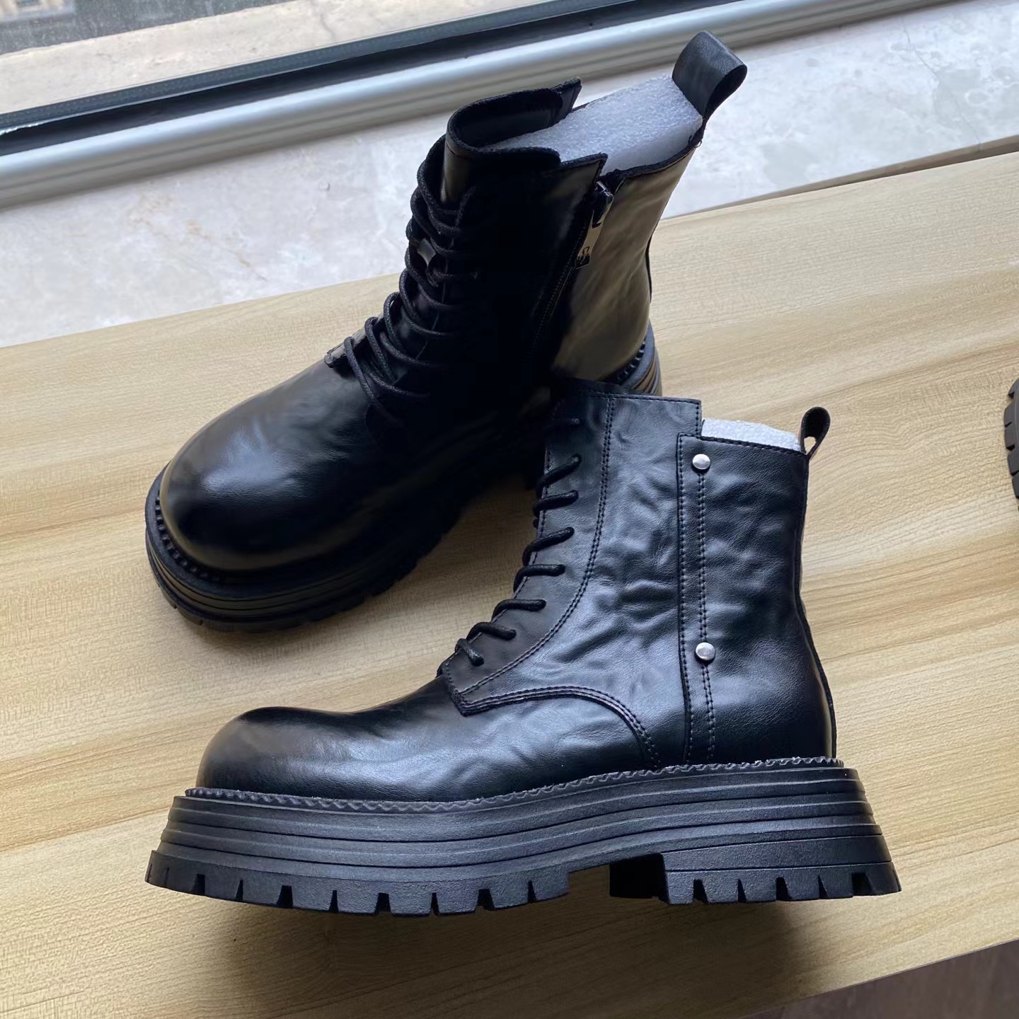 D111904马丁靴女款2025新款秋冬季厚底短靴圆头英伦风百搭粗跟短靴