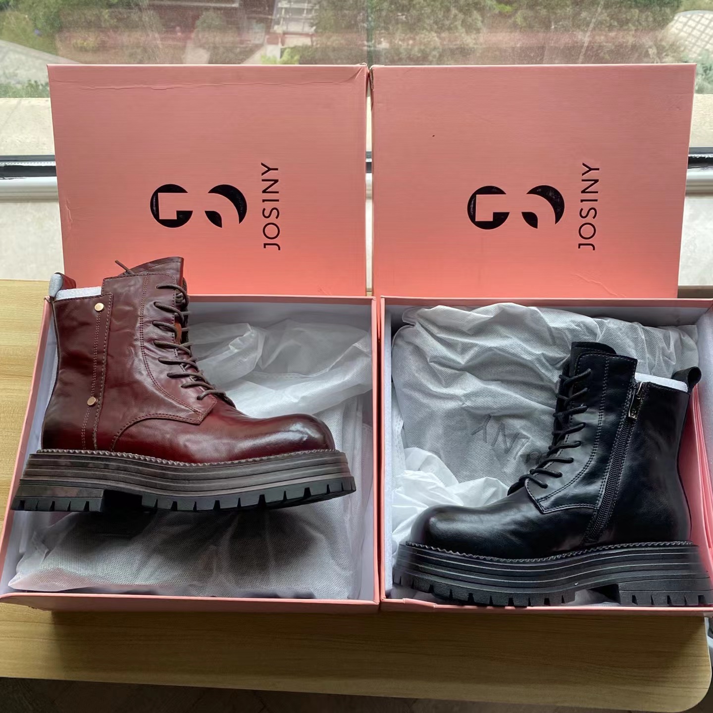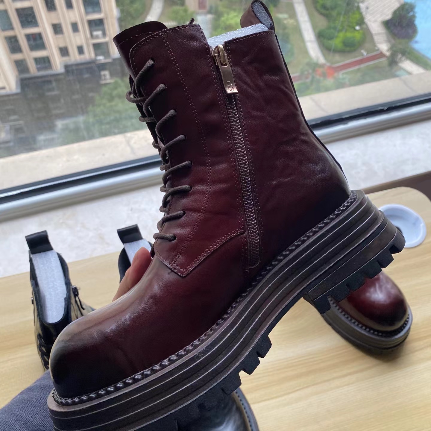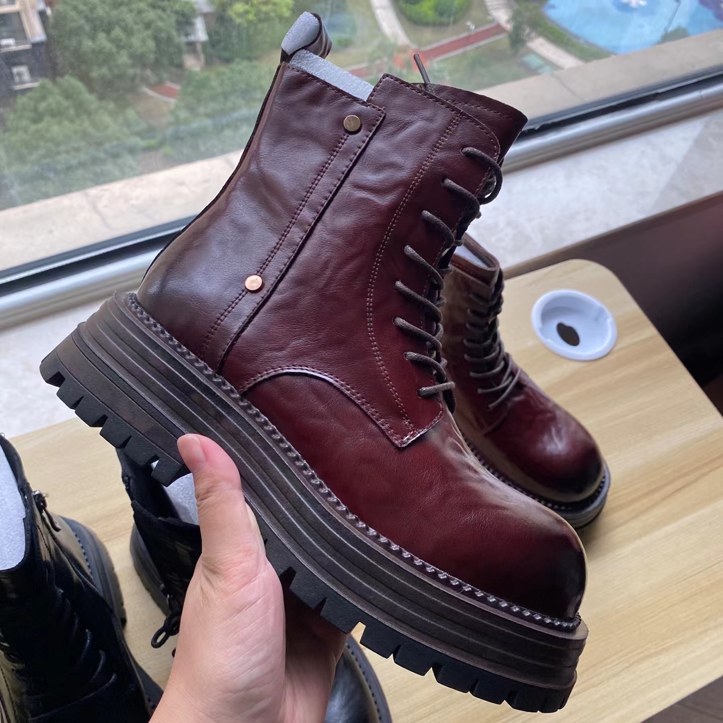 D111904马丁靴女款2025新款秋冬季厚底短靴圆头英伦风百搭粗跟短靴