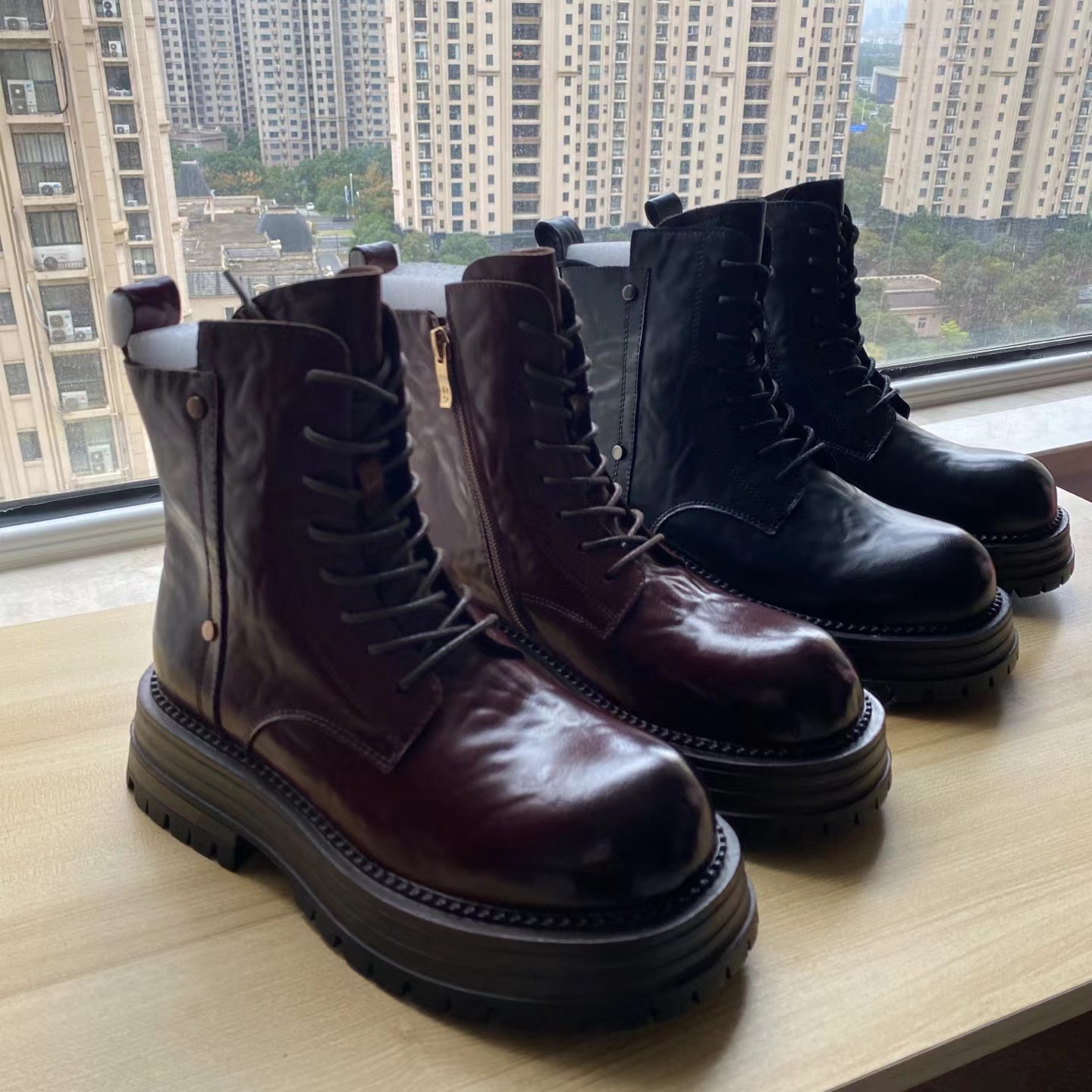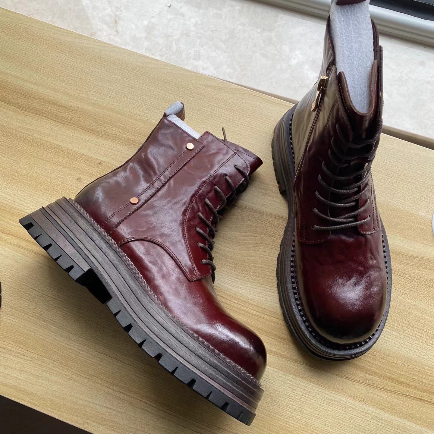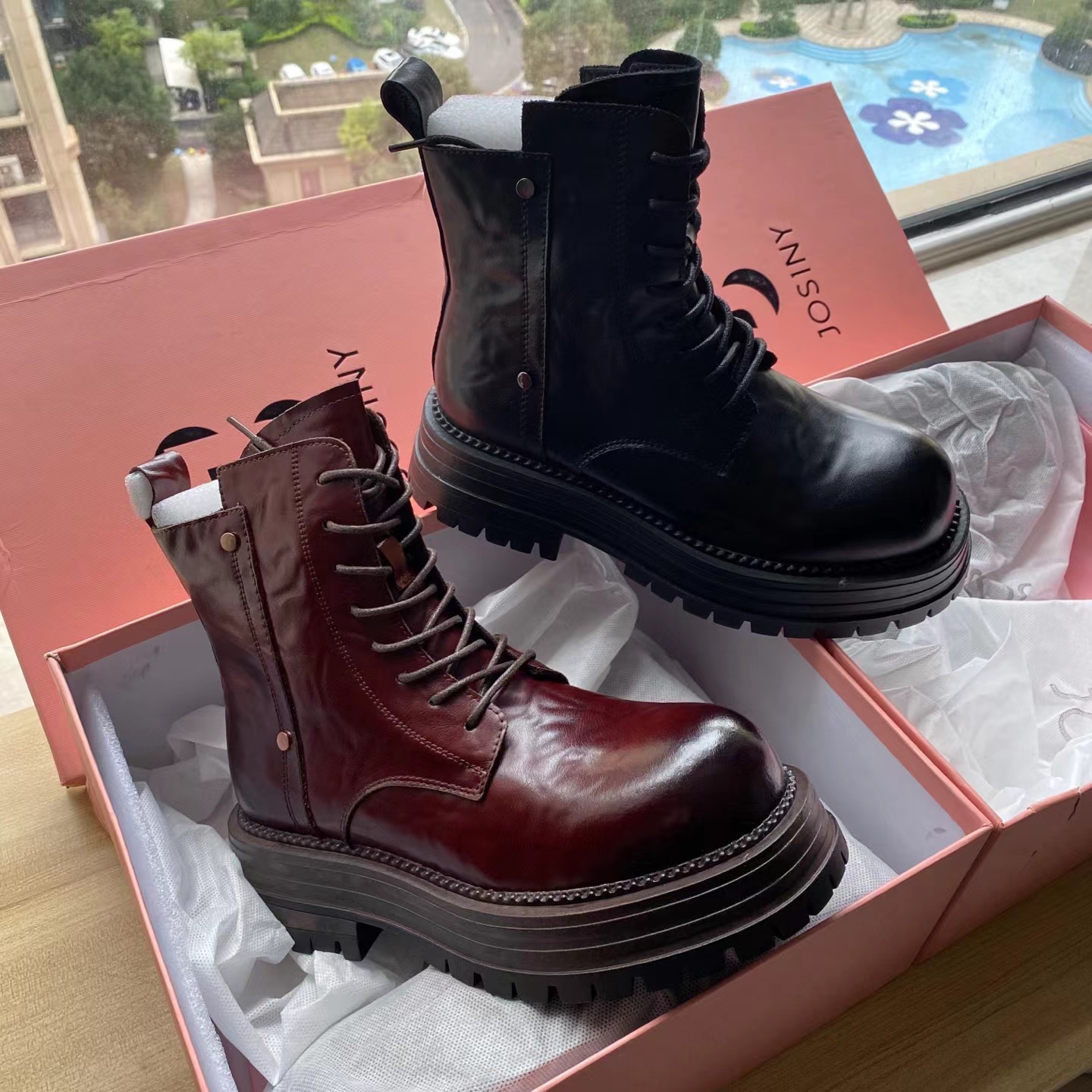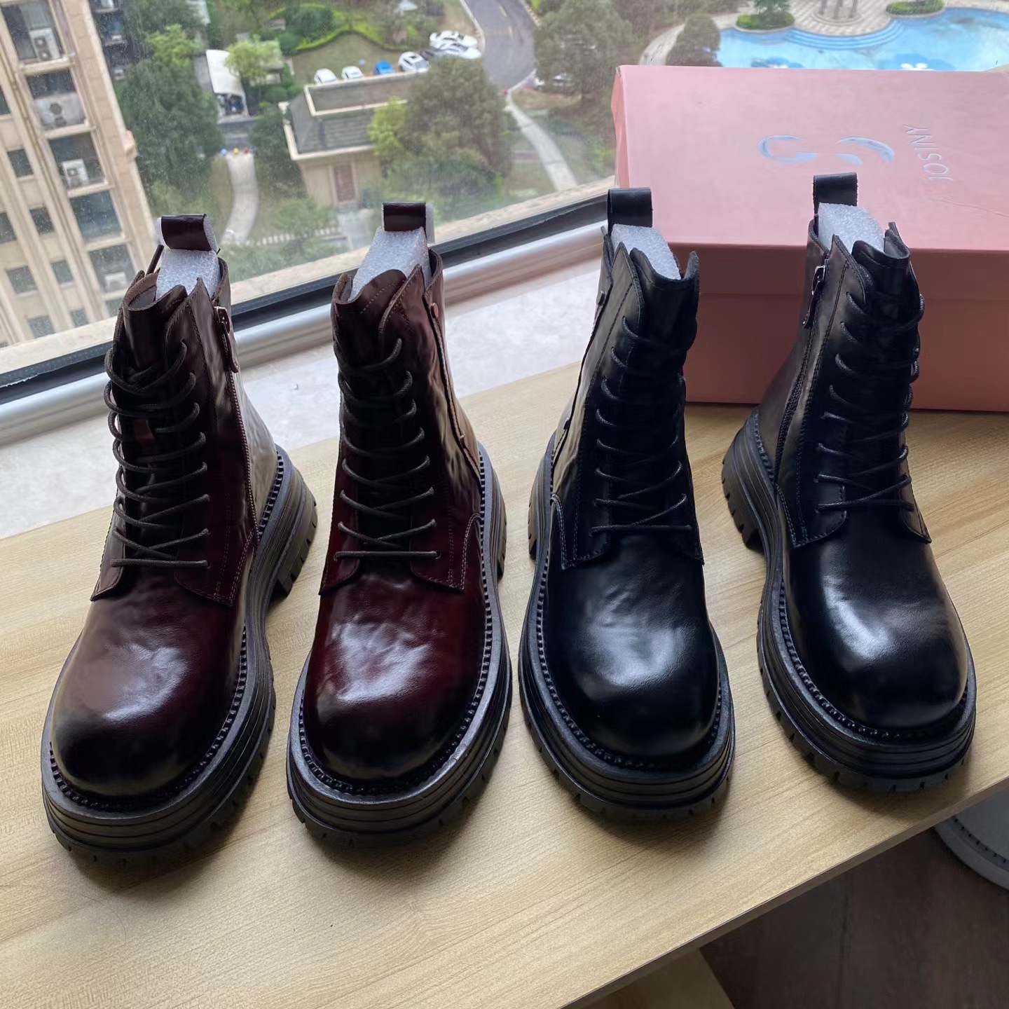 D111904马丁靴女款2025新款秋冬季厚底短靴圆头英伦风百搭粗跟短靴