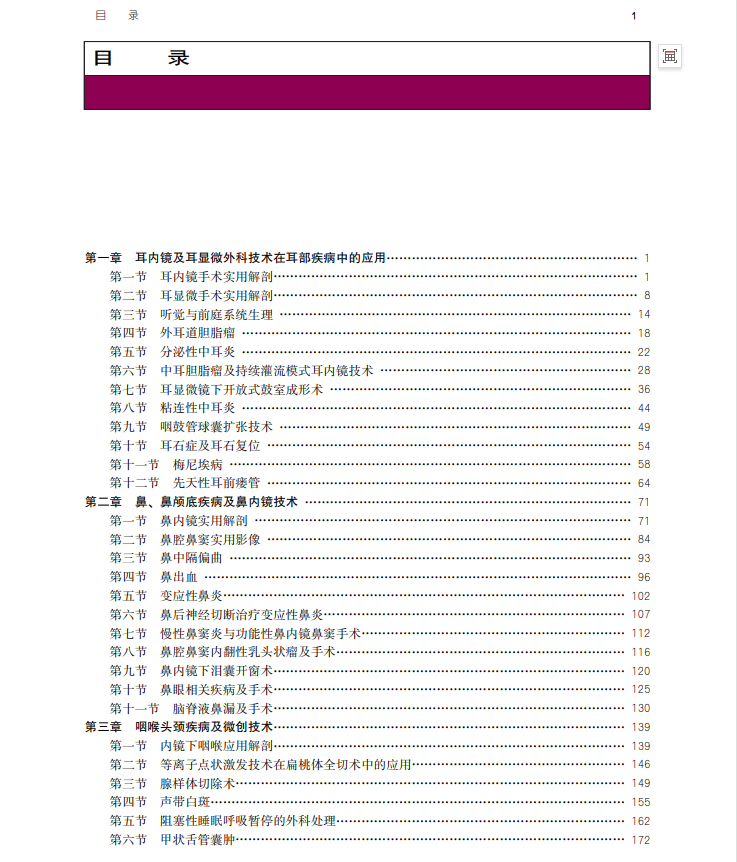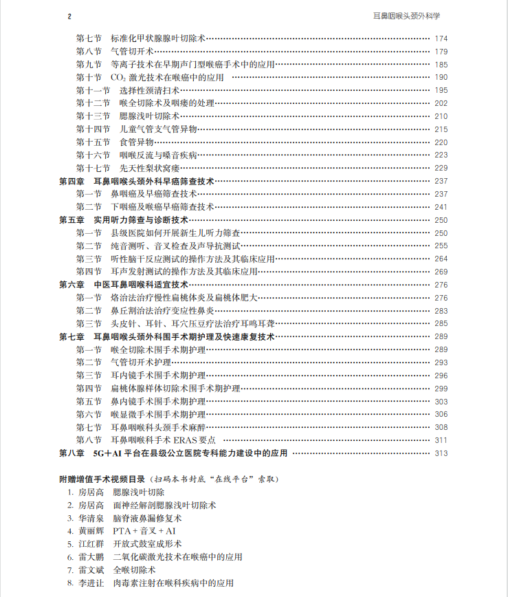 本书基本内容涵盖县级医院能力建设的六大技术和耳鼻咽喉头颈外科快速康护护理技术。六大技术为鼻内镜技术、耳内镜技术、咽喉等离子微创技术、耳鼻咽喉早癌筛查技术、听力筛查及诊断技术及中医耳鼻喉科适宜技术。每项技术又挑选5-8项基层适宜技术。我们本作密切结合临床的宗旨,在国内挑选临床一线专家执笔,将已经证实比较容易推广、见效快、成效好的技术,理论结合实践。并将手术录像以微信二维码的形式再现手术操作场景,以利于基层医务人员学习。