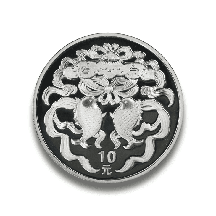 背面图案为鲤鱼、飘带等元素,上书“春节”二字,寓意年年有余。