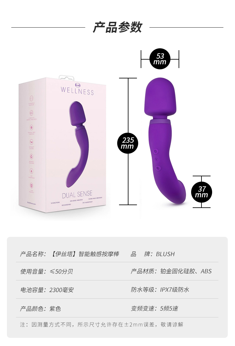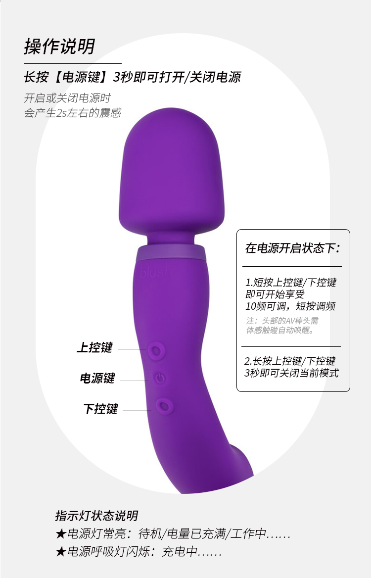 美国blush按摩棒C点G点震动棒双头可用插入高潮棒女用成人用品