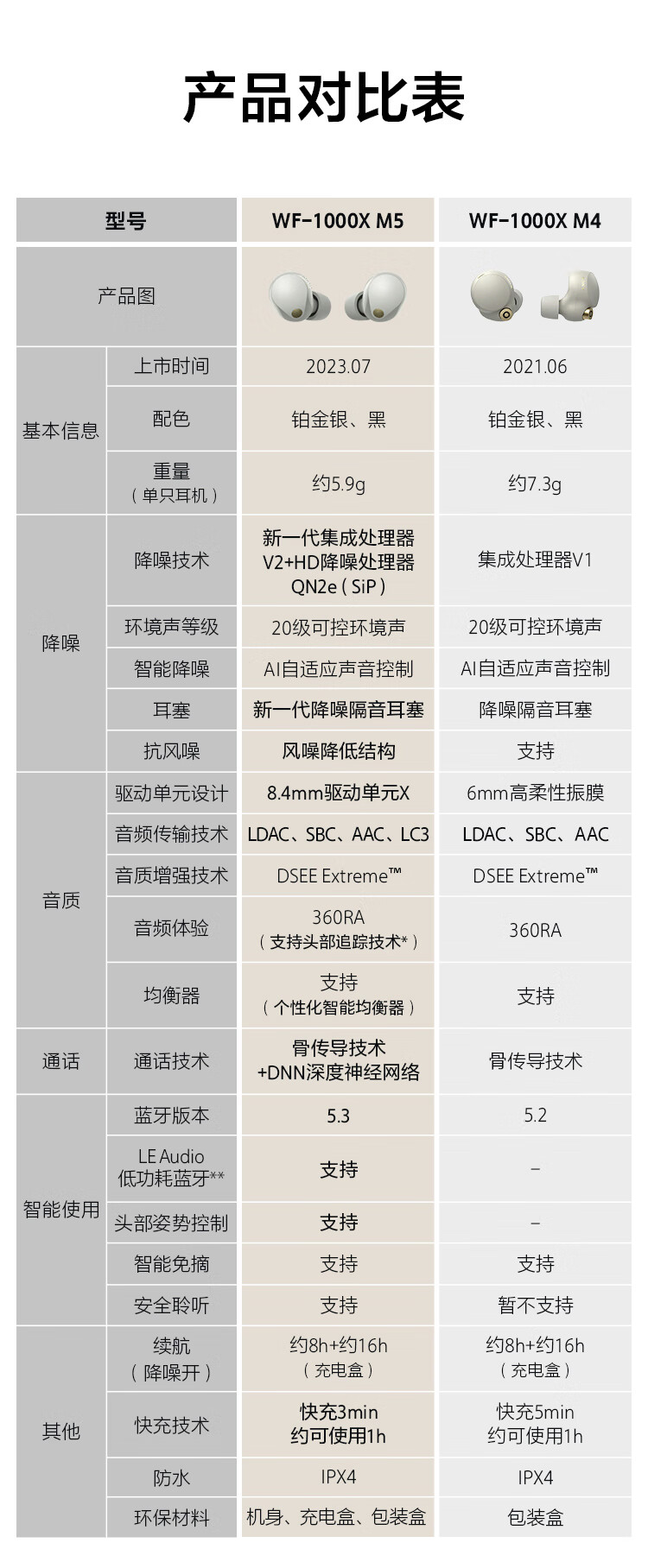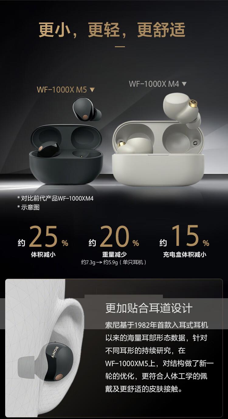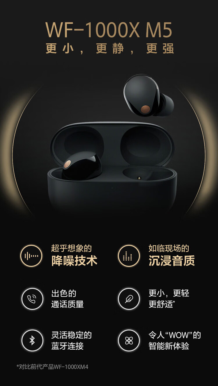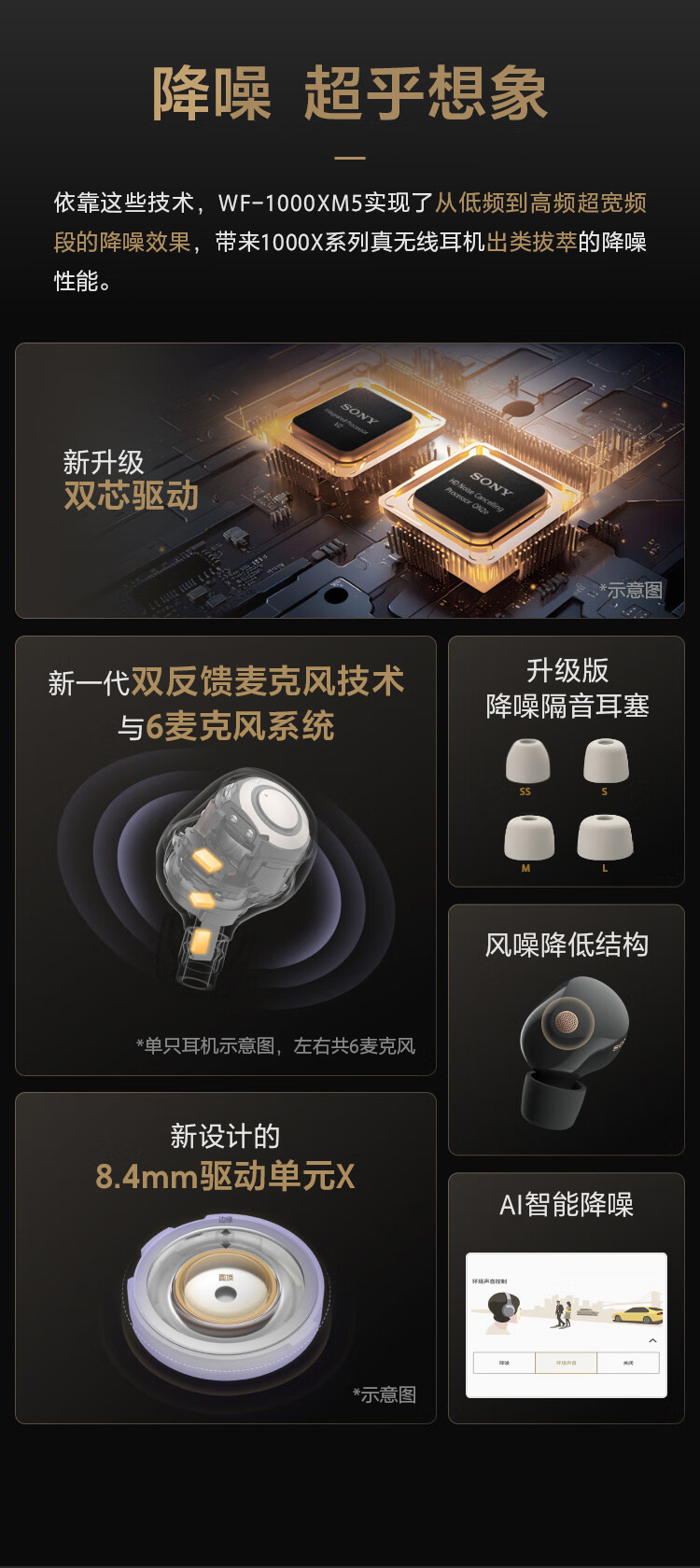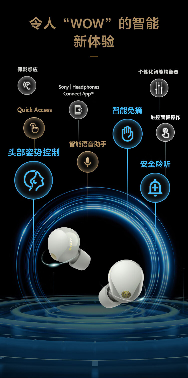 索尼(SONY)WF-1000XM5 真无线蓝牙降噪耳机 新一代降噪豆 智能AI 蓝牙5.3