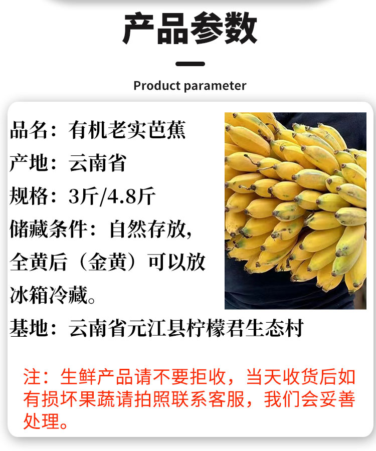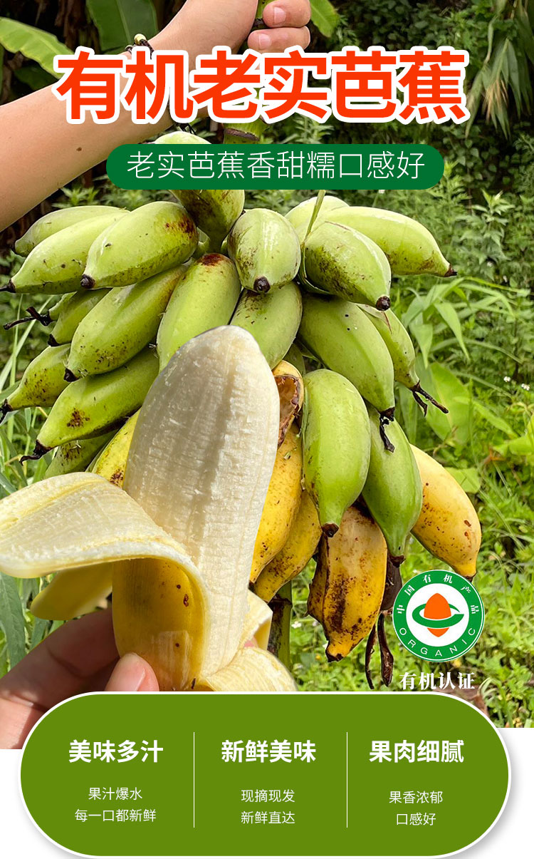 【厂商直发】云南有机老实芭蕉3斤/4.8斤装口感香甜软糯包邮