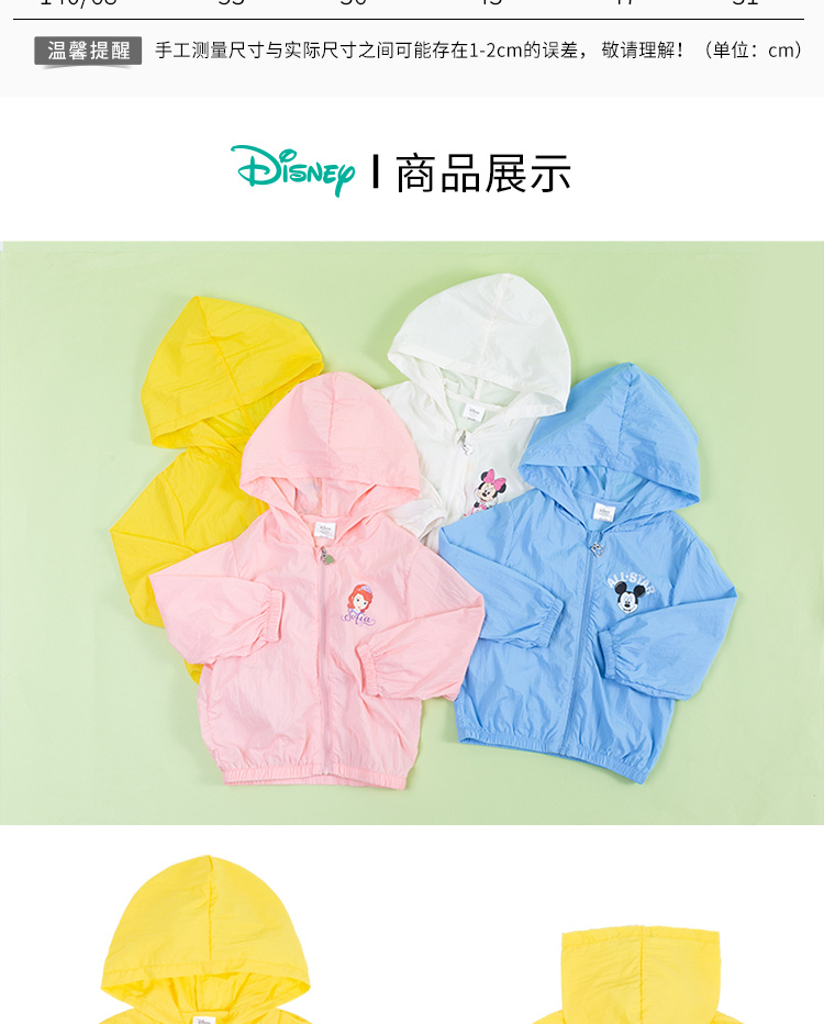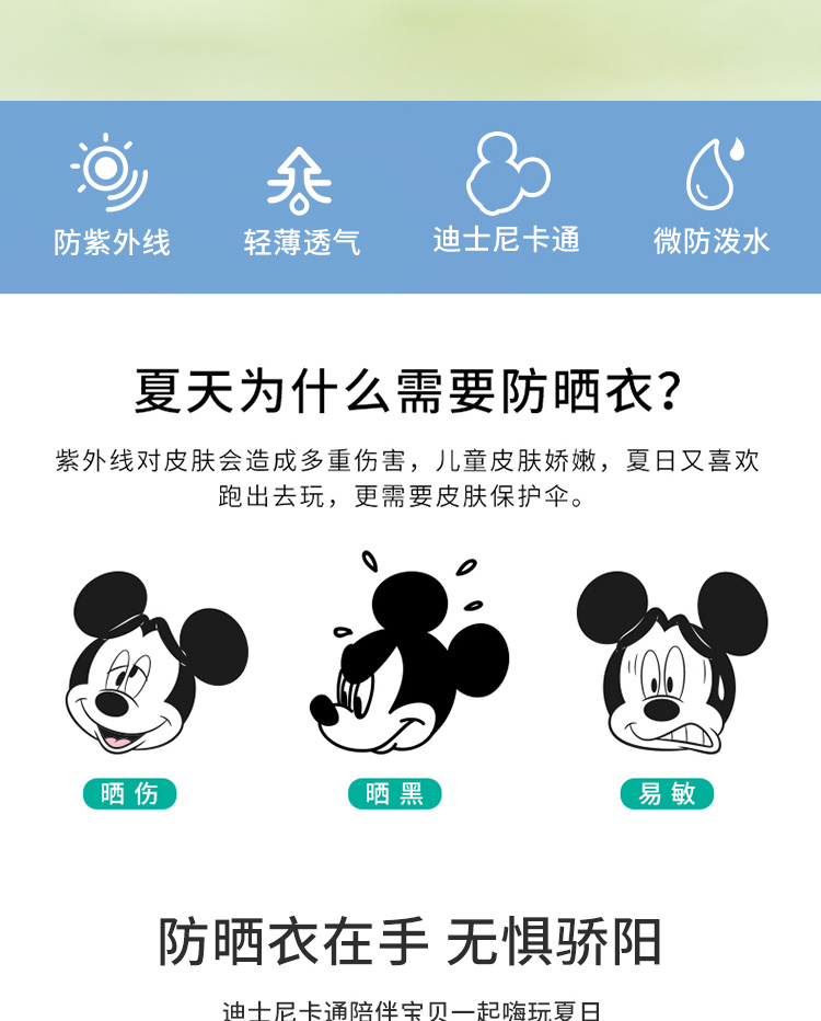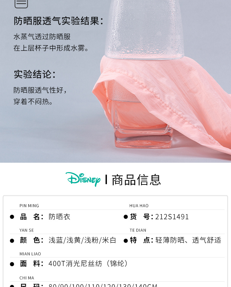 迪士尼童装男女童皮肤衣春夏新款宝宝空调衫外套透气防晒服薄