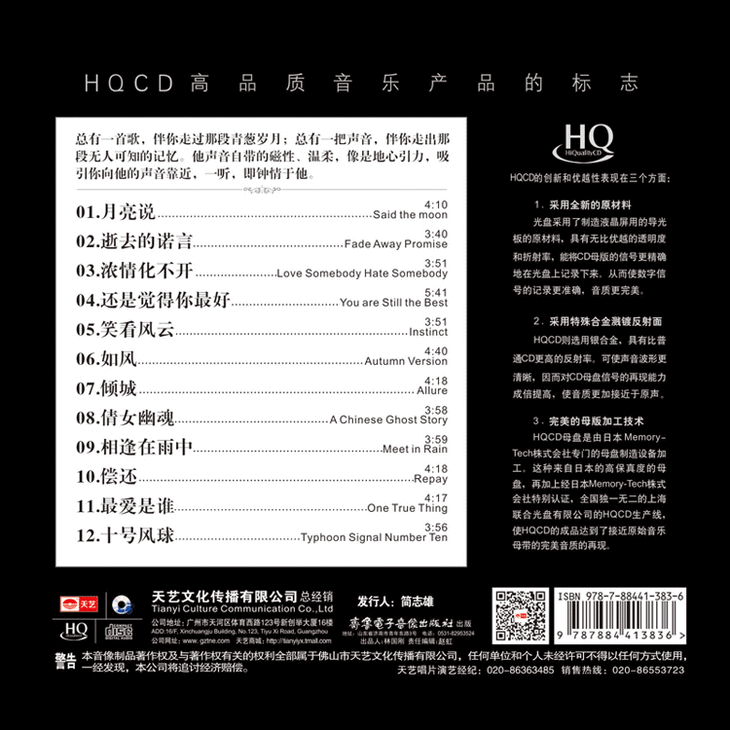 天艺唱片 钟明秋《一听钟情》HQCD 高品质CD 发烧碟 2017新专辑 商品缩略图0 天艺唱片 钟明秋《一听钟情》HQCD 高品质CD 发烧碟 2017新专辑 商品缩略图1