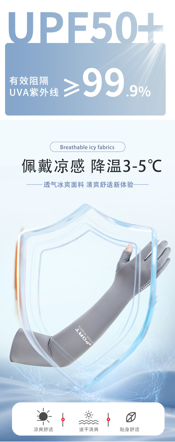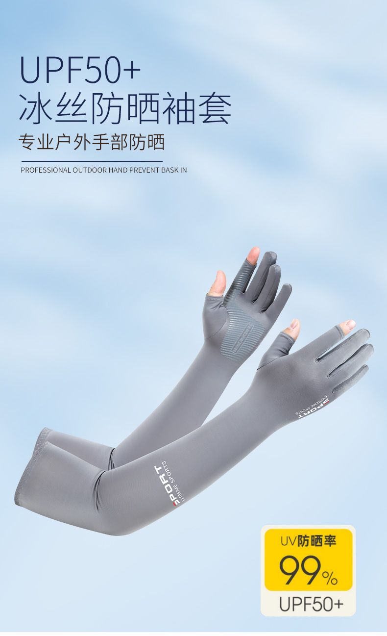 【买一送一】冰袖连指冰丝夏季男女防晒手套一体钓鱼防紫外线透气护手臂袖套