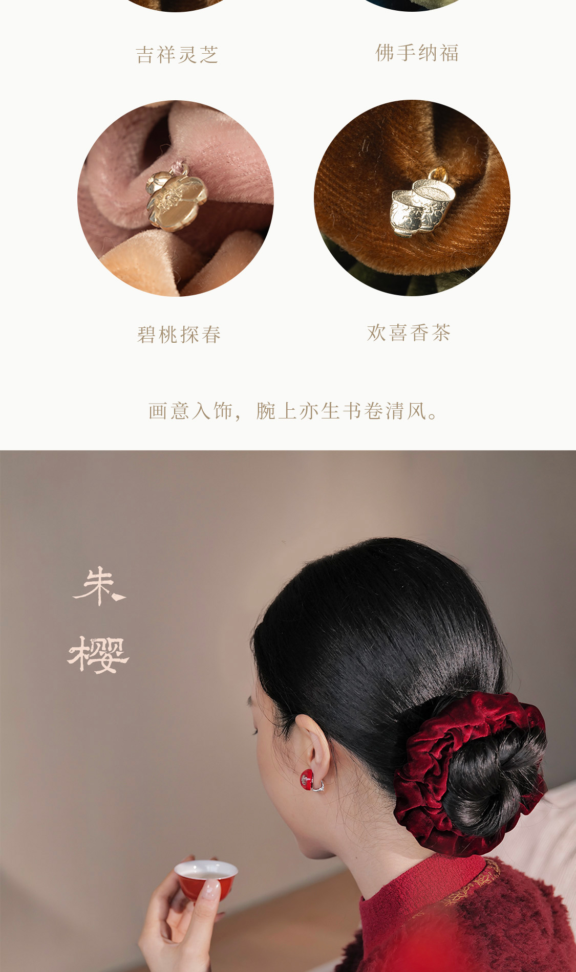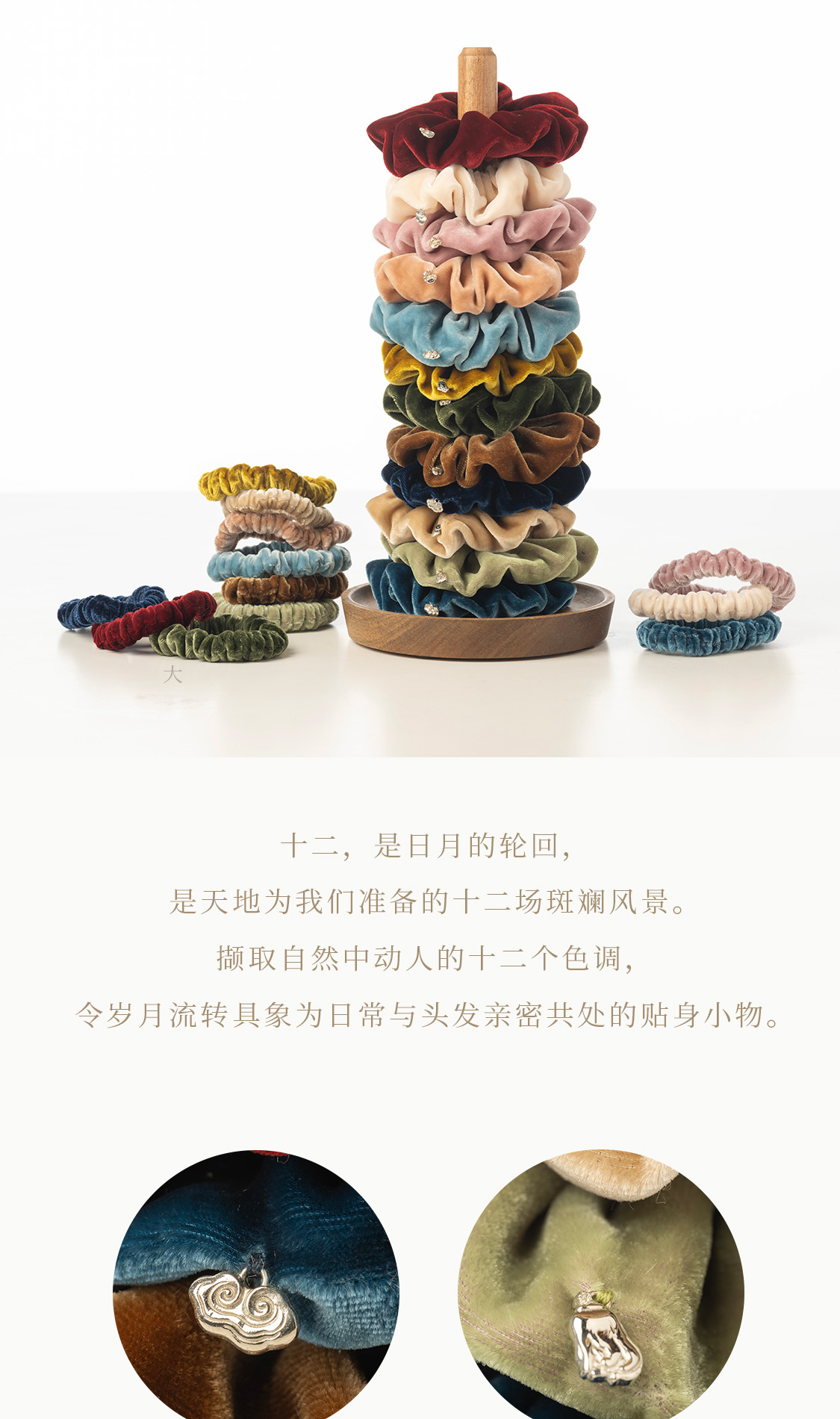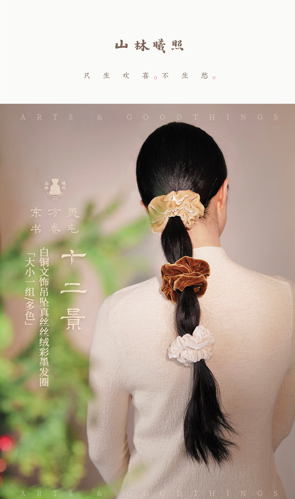 十二景 白铜文饰吊坠真丝丝绒彩墨发圈 大小一组 多色 山林曦照