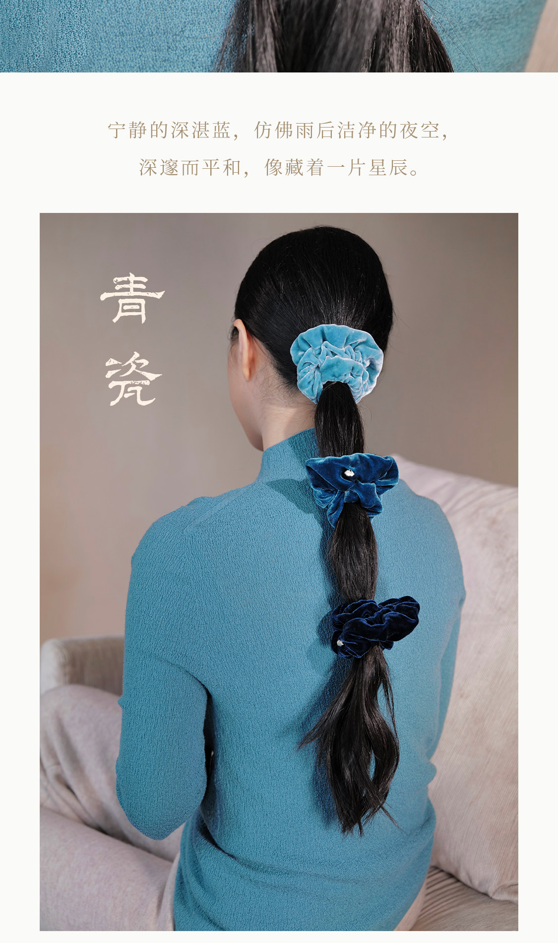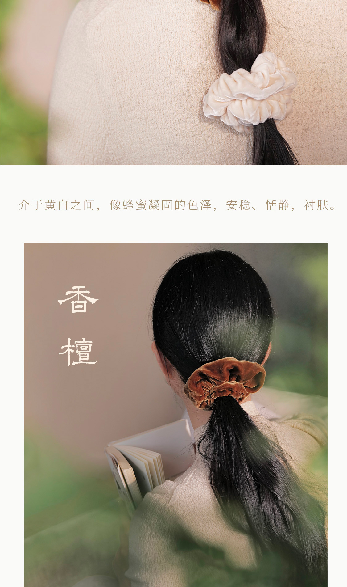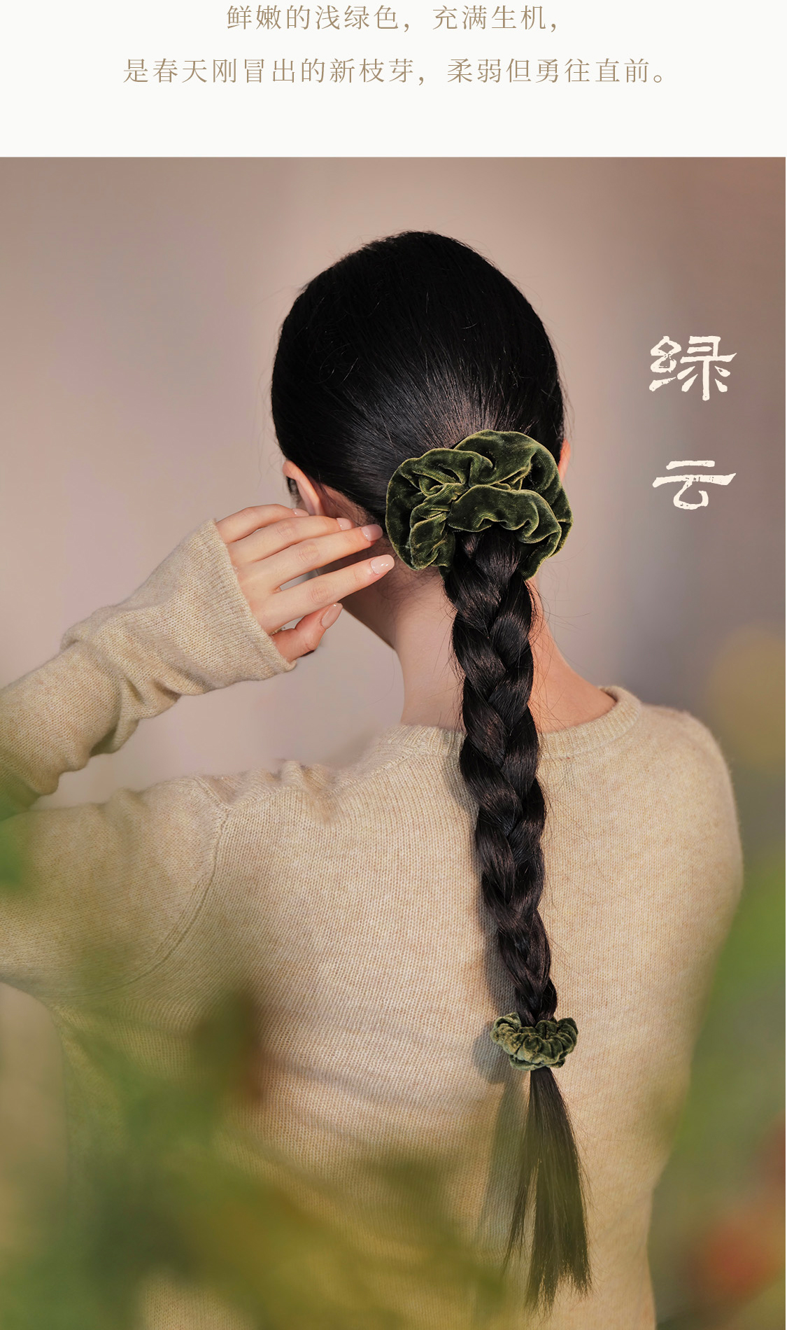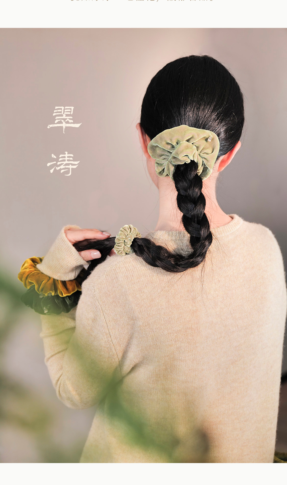 十二景 白铜文饰吊坠真丝丝绒彩墨发圈 大小一组 多色 山林曦照