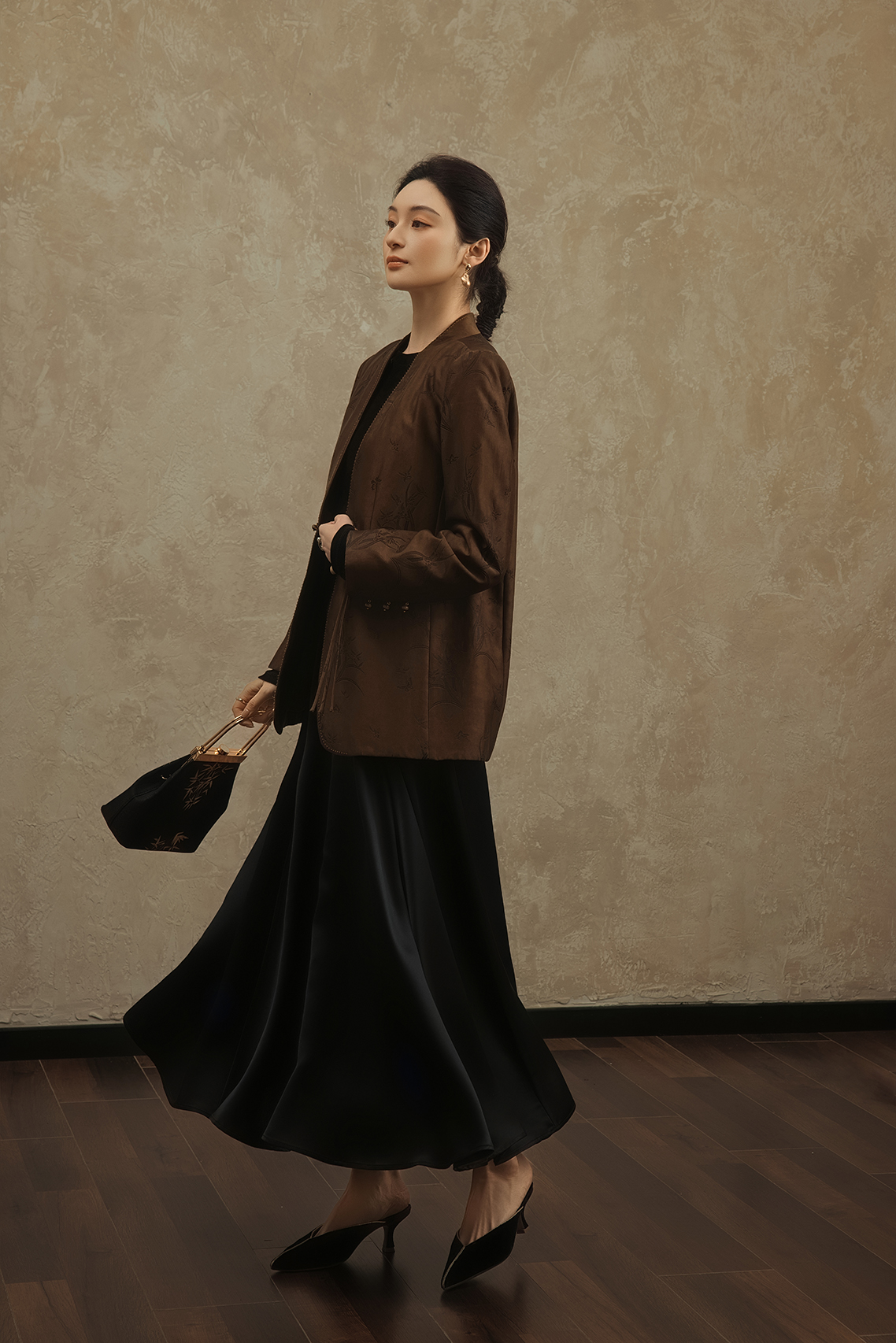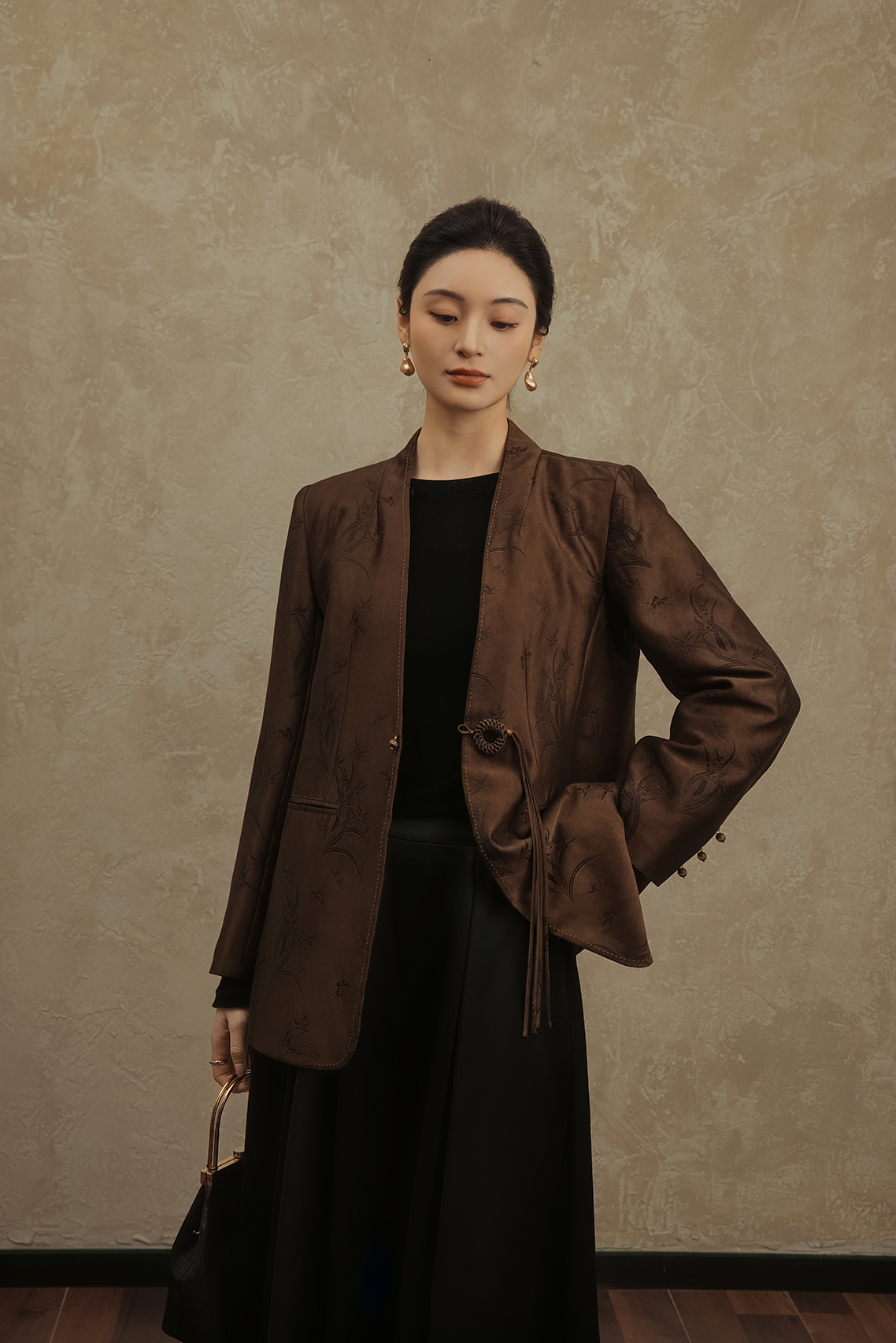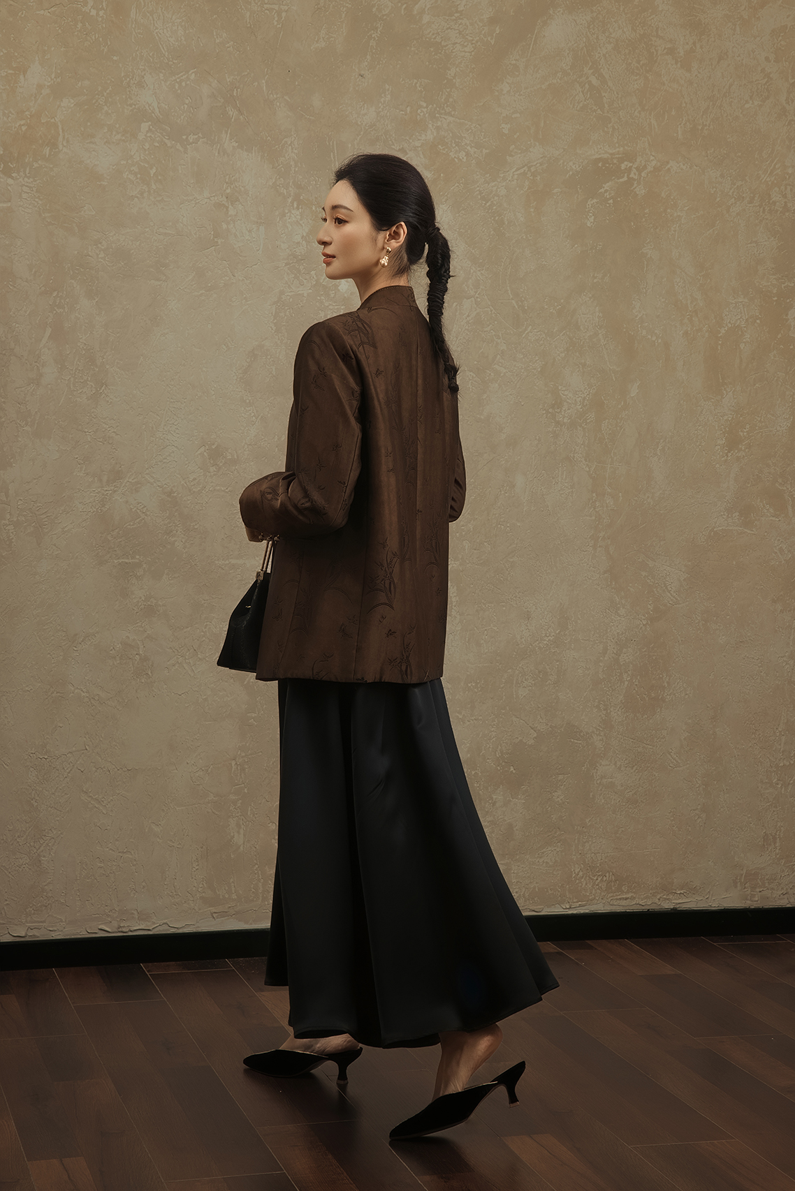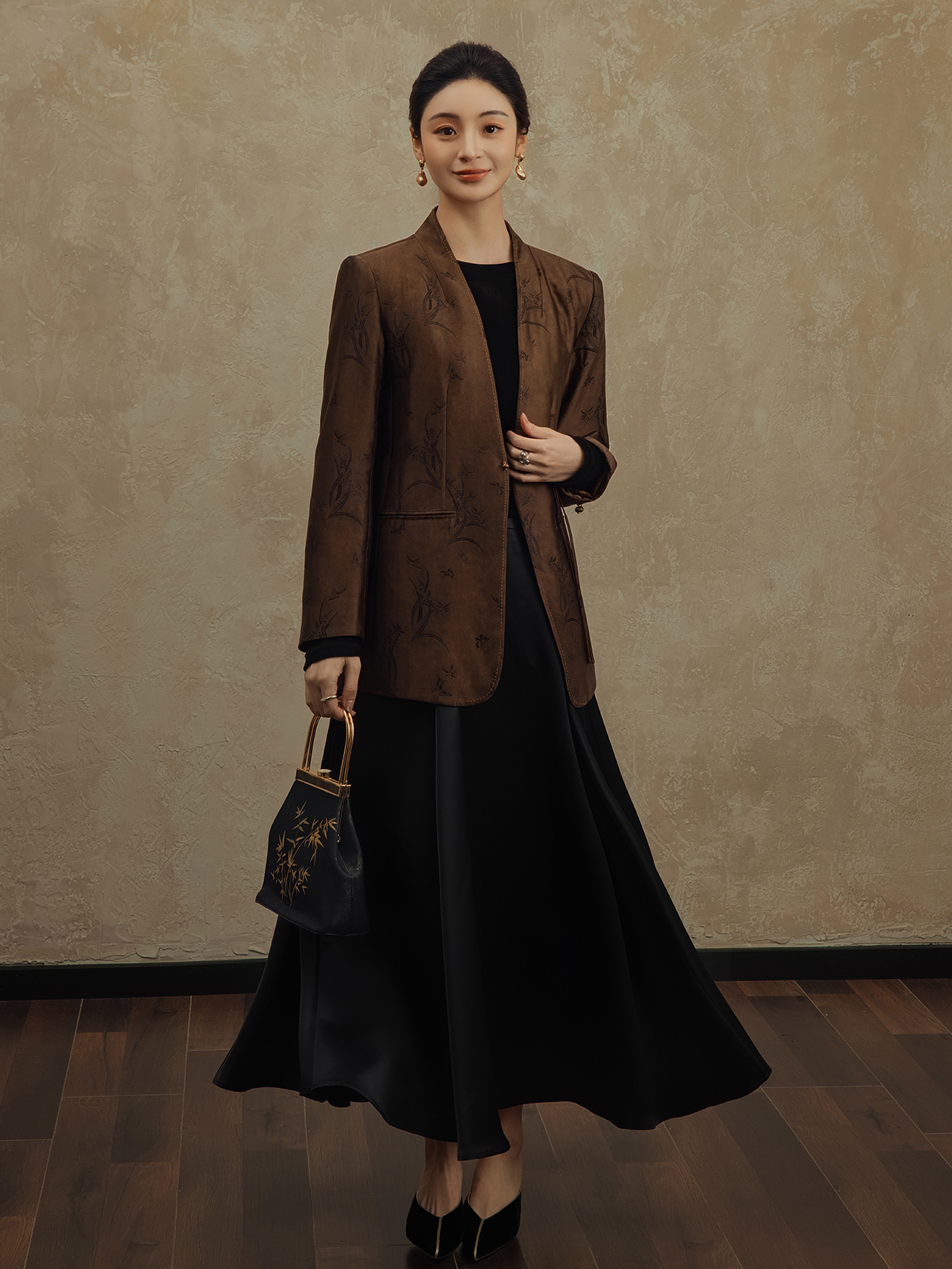 盛唐婧 | 轻奢极简提花重缎香云纱修身西装外套