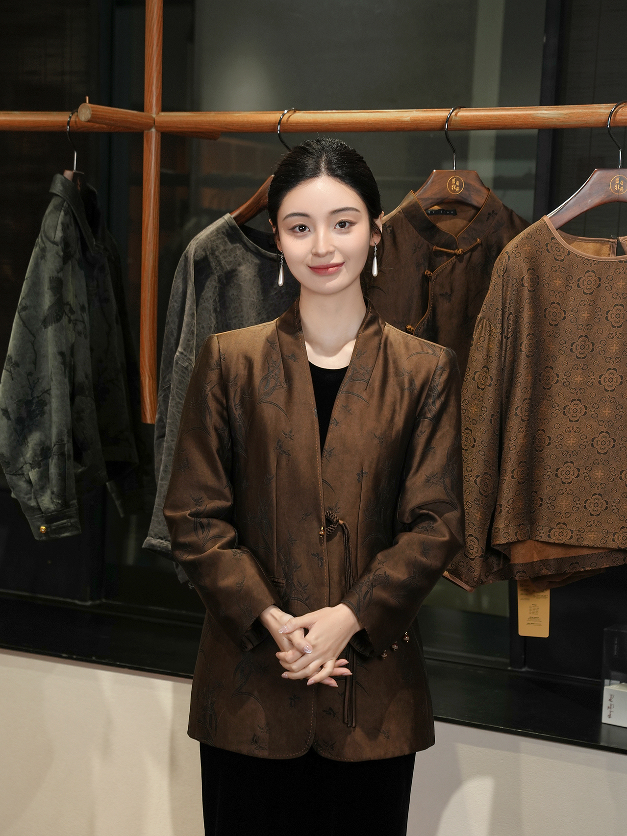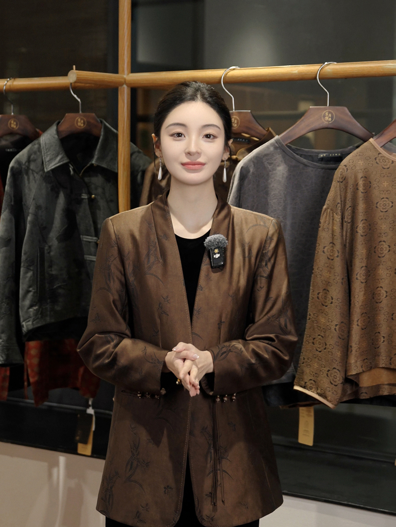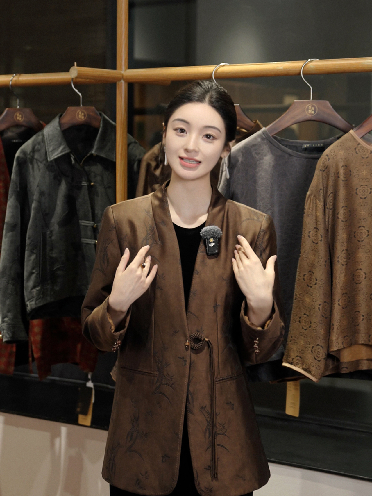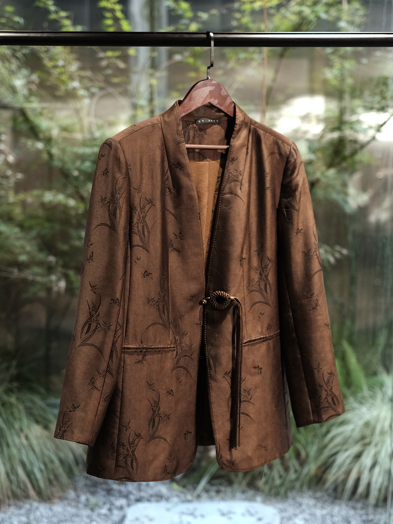 盛唐婧 | 轻奢极简提花重缎香云纱修身西装外套