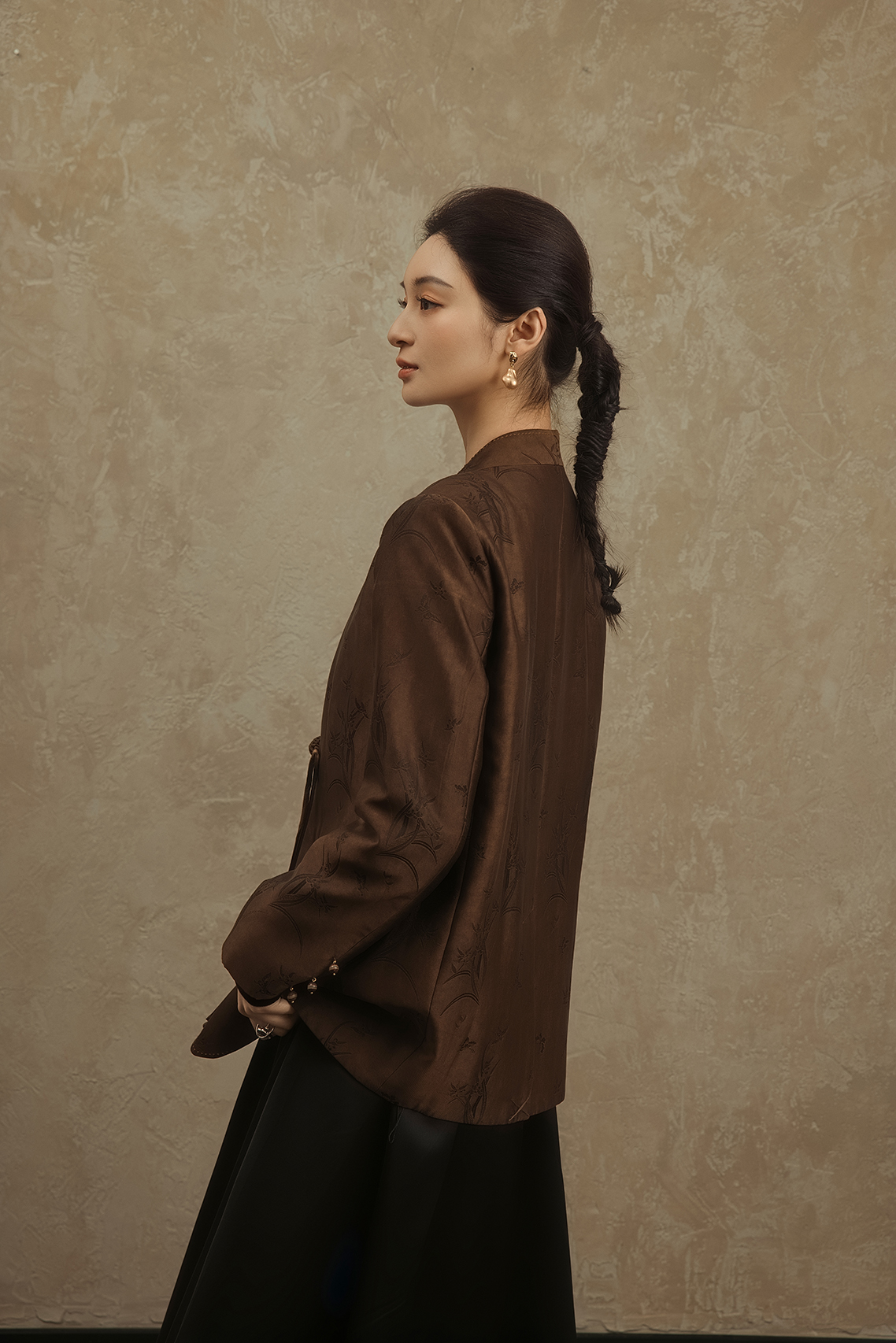 盛唐牡丹 |真丝提花梅兰竹菊偏襟上衣