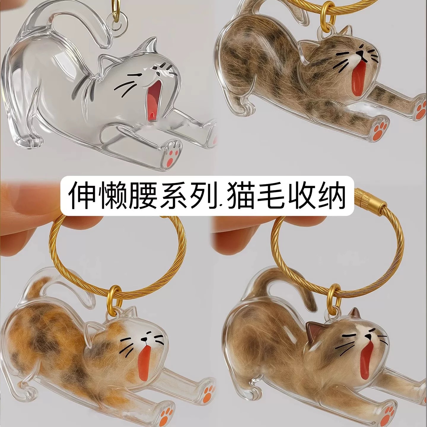 【随身带❗️猫毛收纳挂件】给心爱的猫猫毛发收集起来,造型萌款式可爱,随时随地陪着你,扭蛋猫咪跨境毛发存放胶囊包钥匙扣挂件纪念QQ
