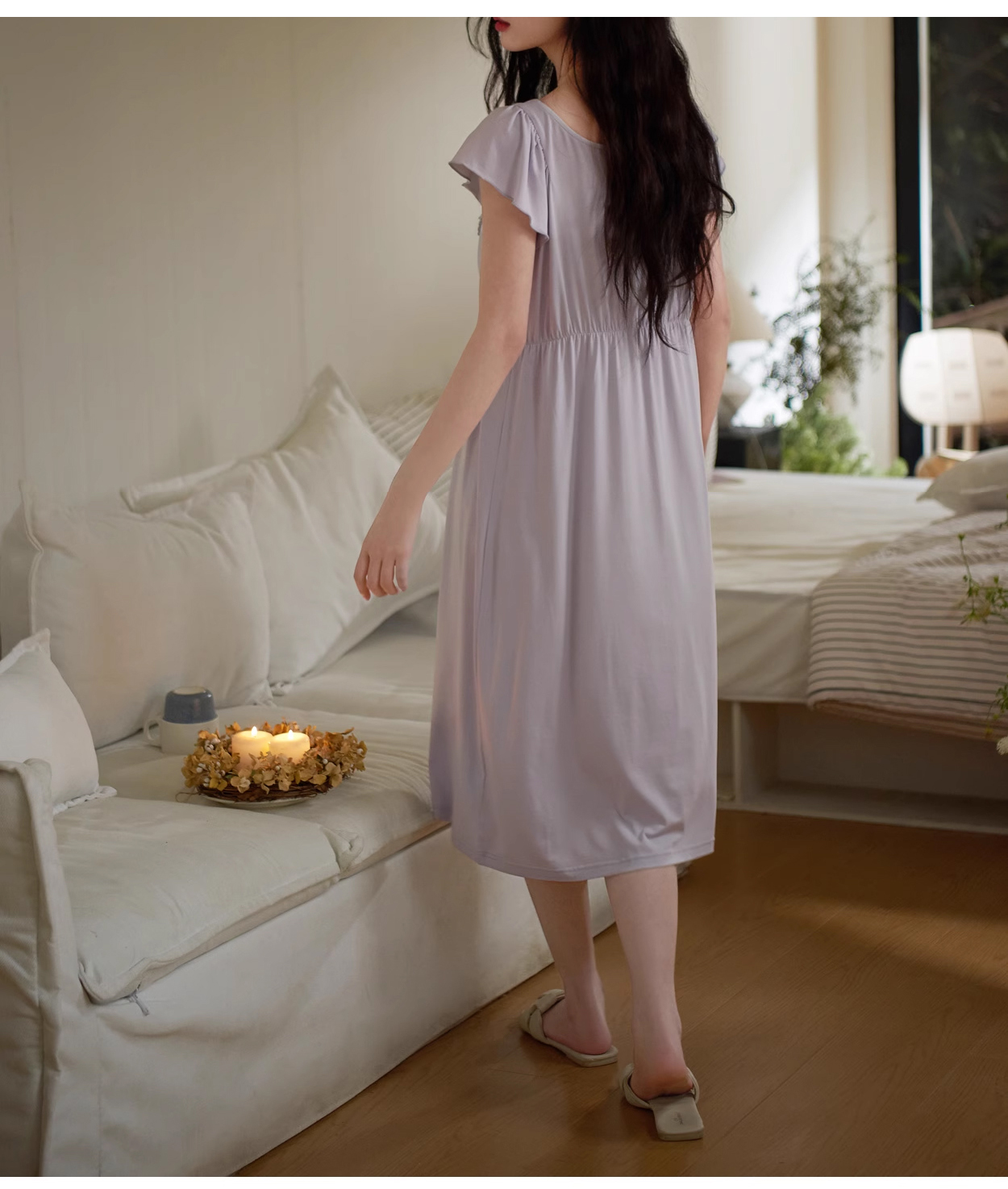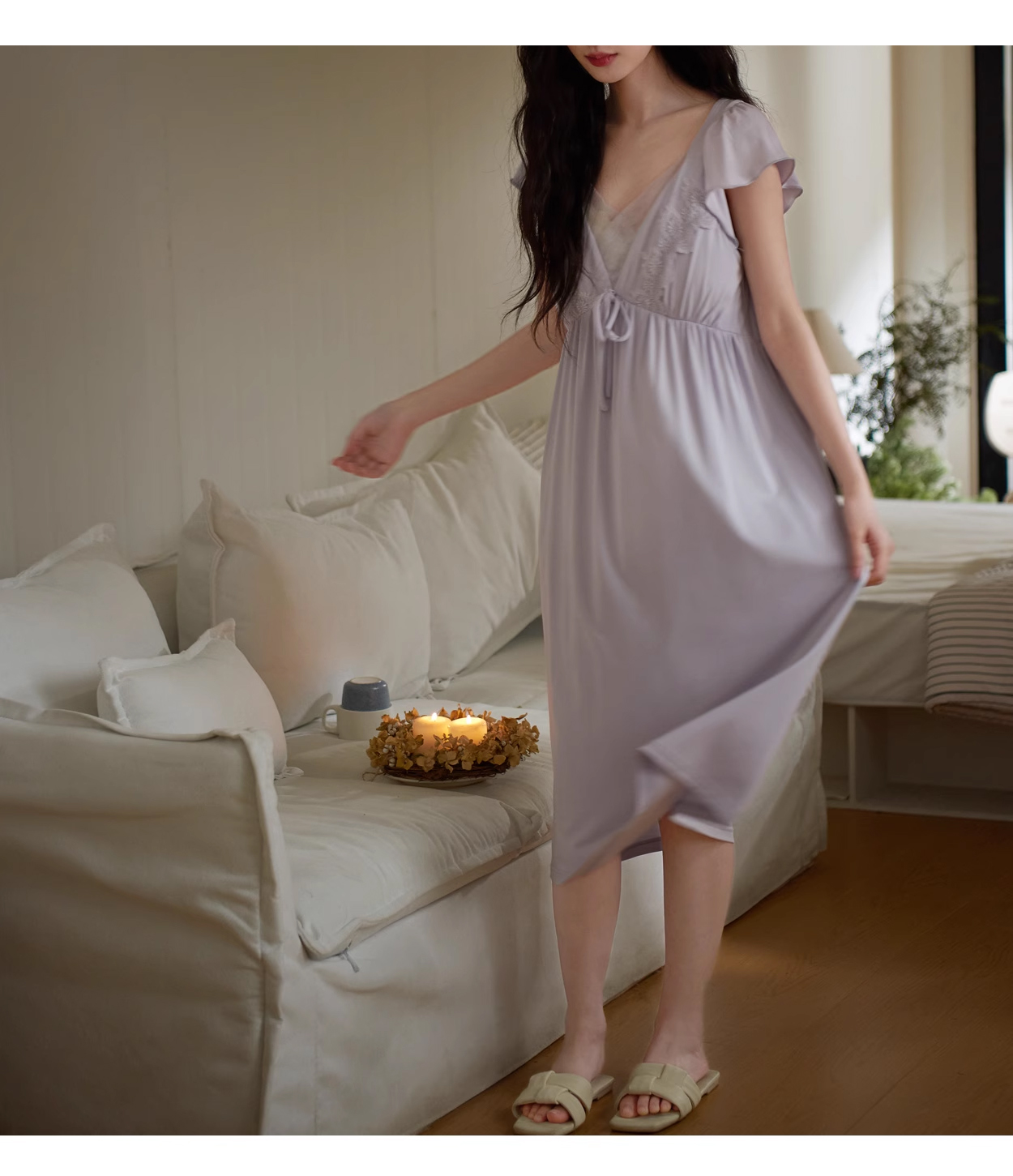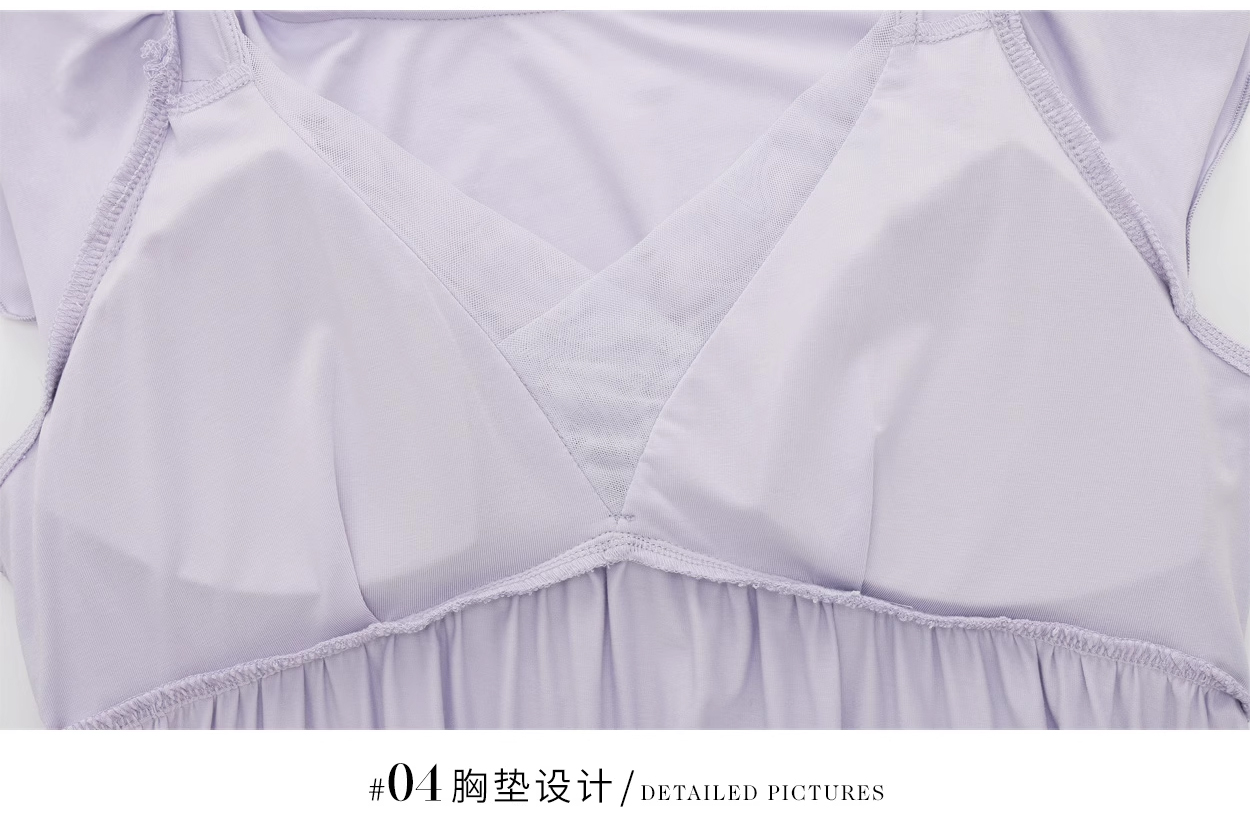 裁缝学苑AS349莫代尔V领小飞袖睡裙纸样睡衣裙子带胸垫女装样板