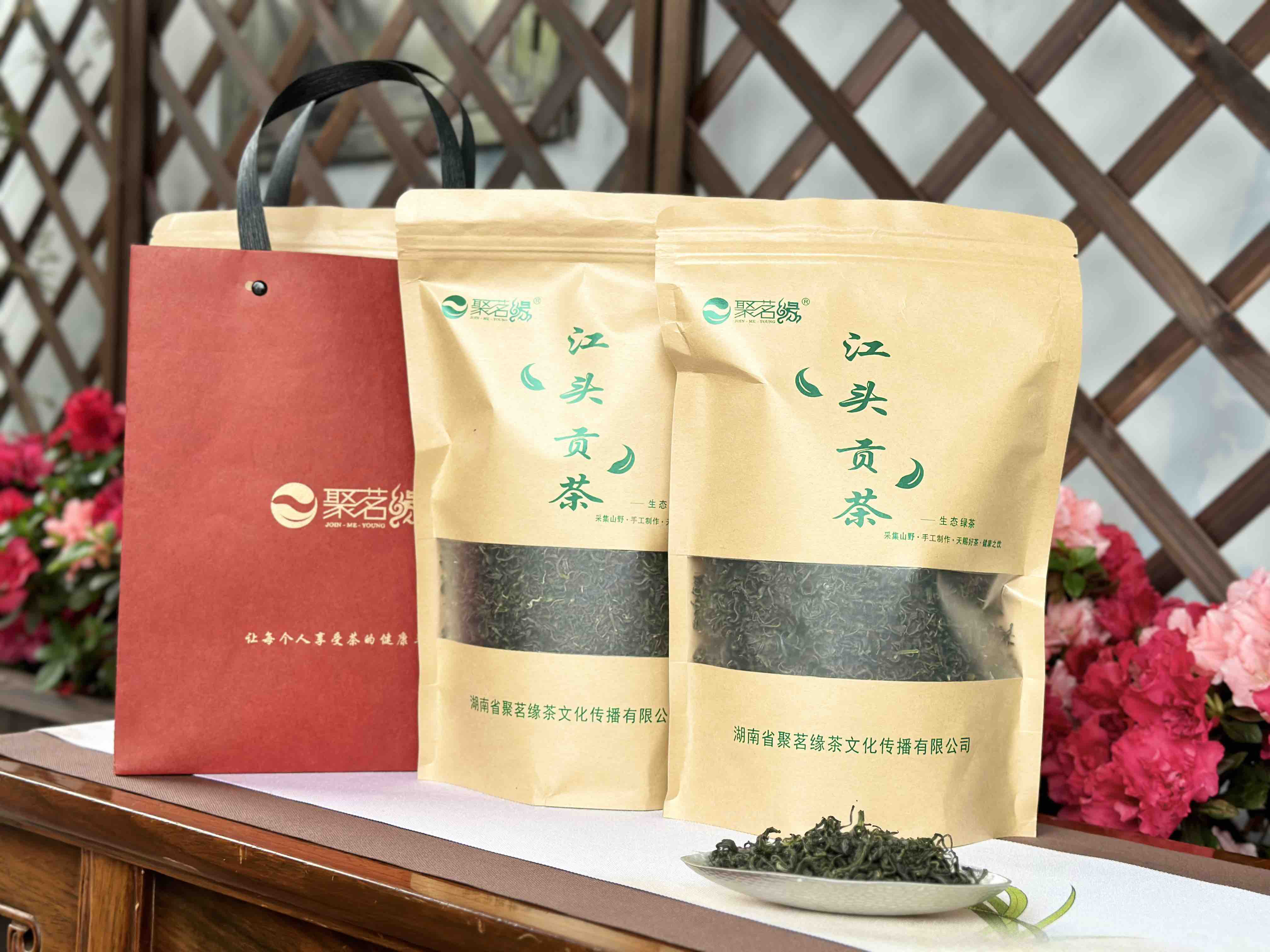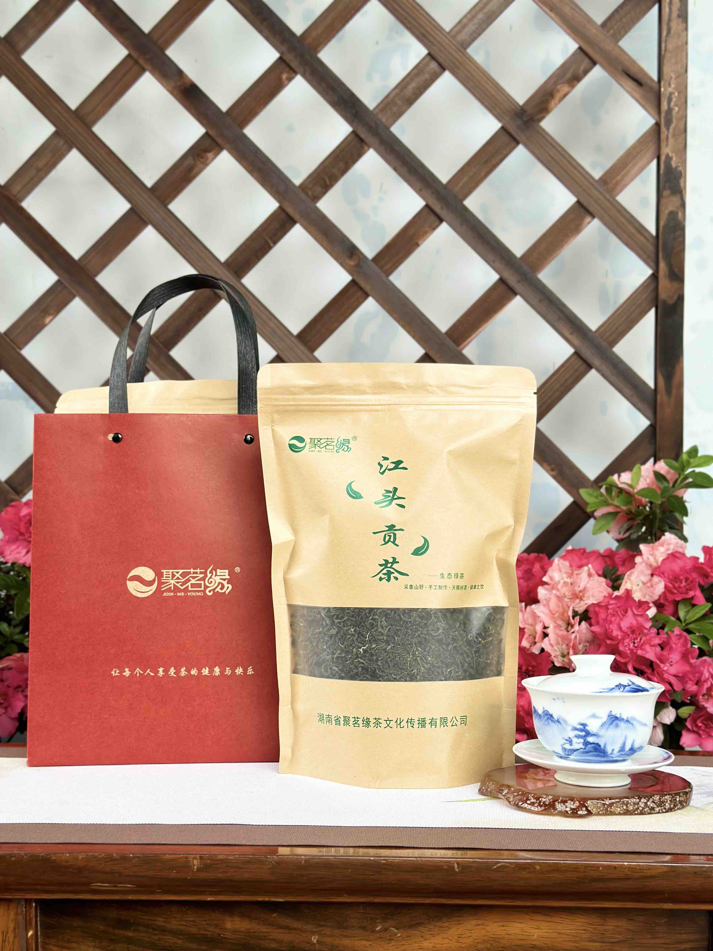 江头贡茶,汲天地灵气,聚日月精华,古法手工炒制,原生态更健康。发源于中国四大发明之首造纸术发明家蔡伦的故乡——耒阳,自秦迄清,被钦定为历代宫廷御用绿茶,故名"江头贡茶"。