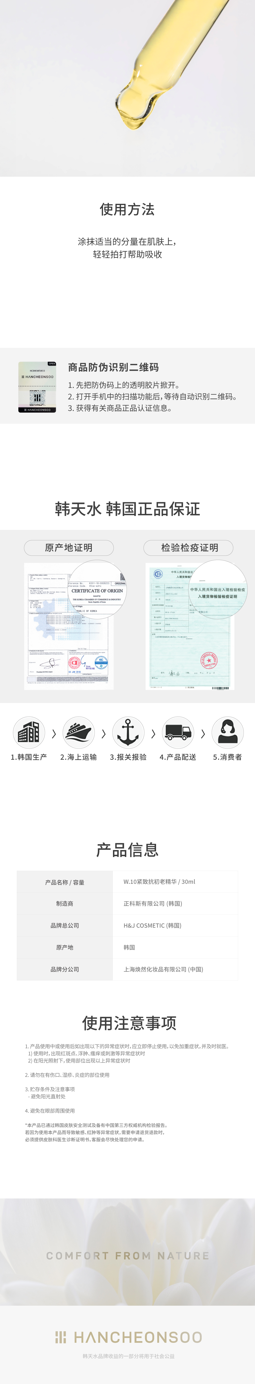 韩天水第二代W.10十籽油保湿焕亮精华韩国原装进口30ml