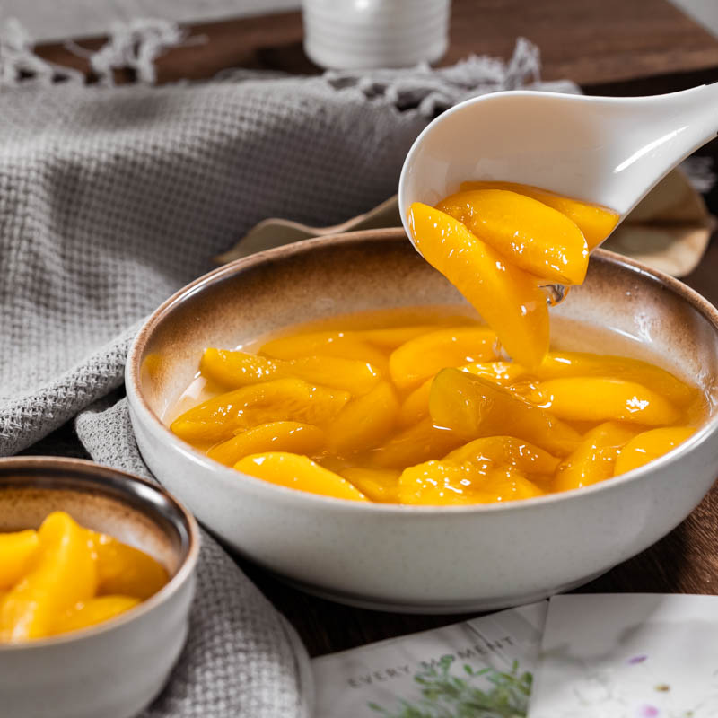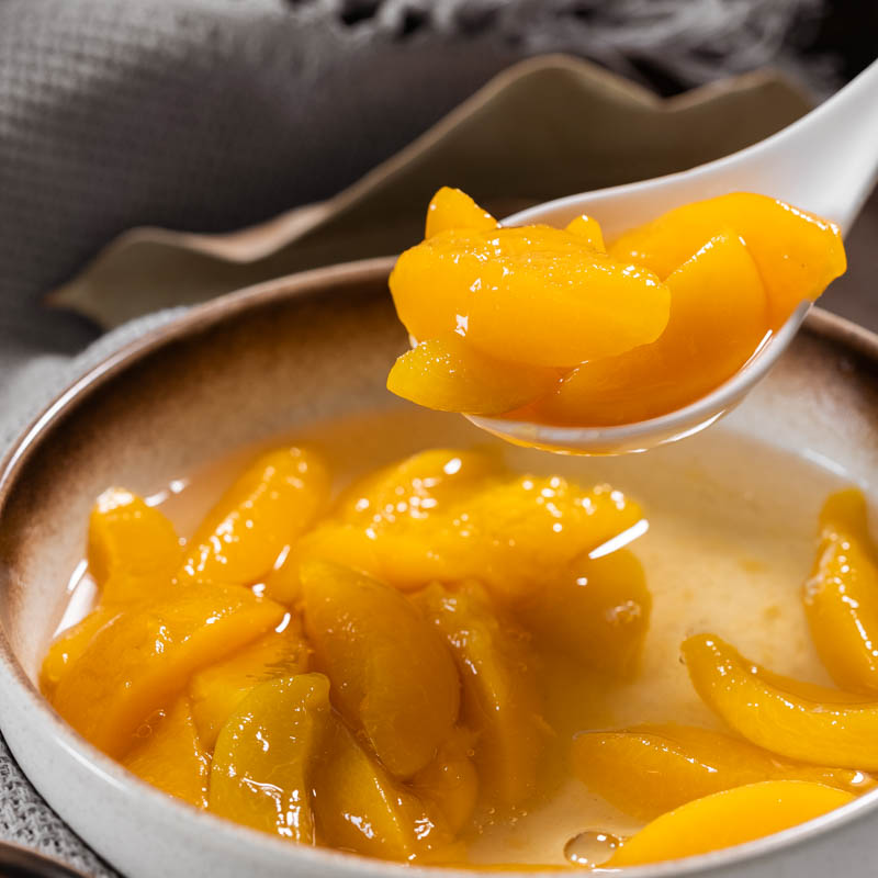 咱们这款黄桃是烟台当地的一个出口企业加工生产的