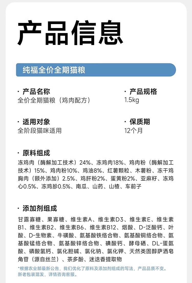 纯福 【 幼猫猫粮1kg】全价无谷酶解幼猫全期猫干粮正品1袋