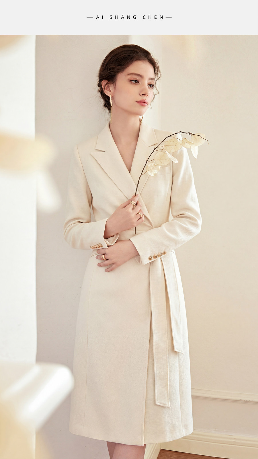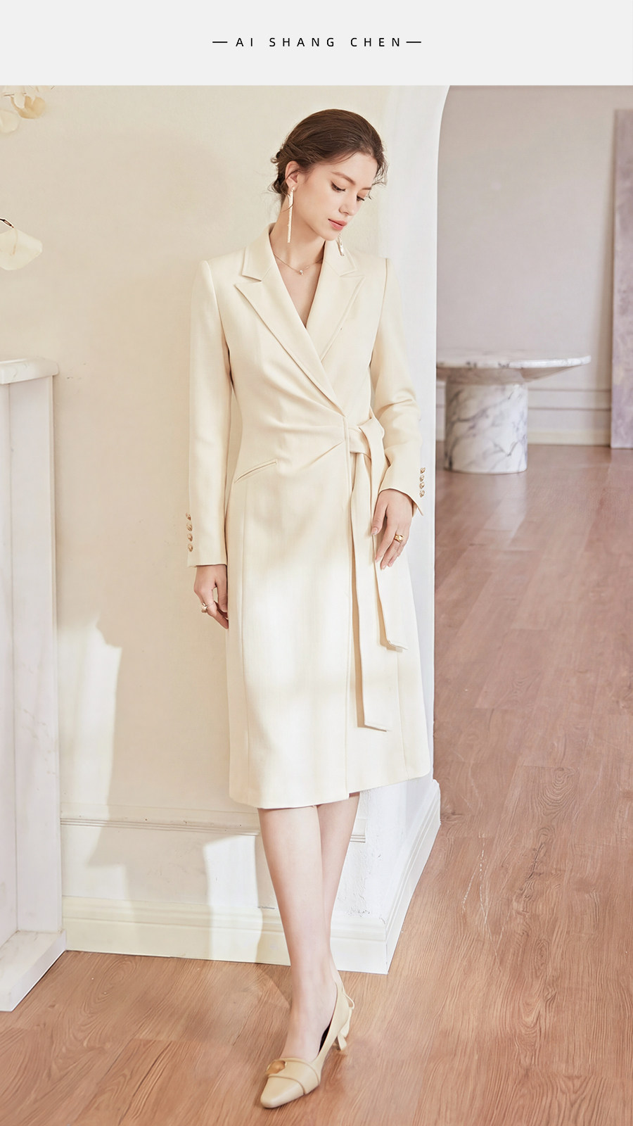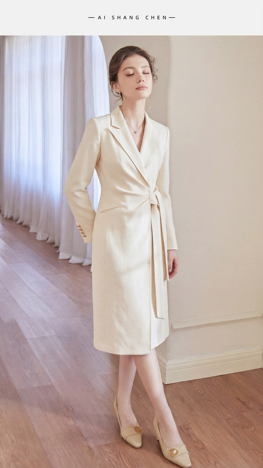 艾尚臣收腰绑带正式职业连衣裙女中长裙高级感职场别致西装裙季