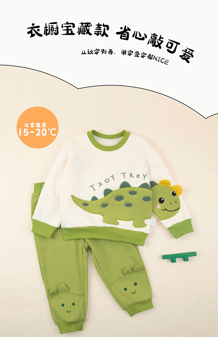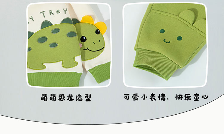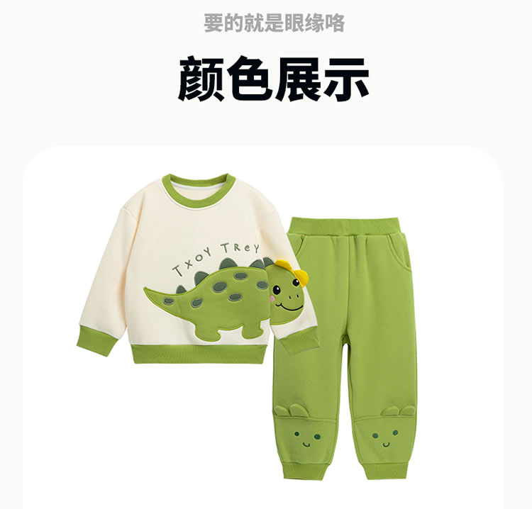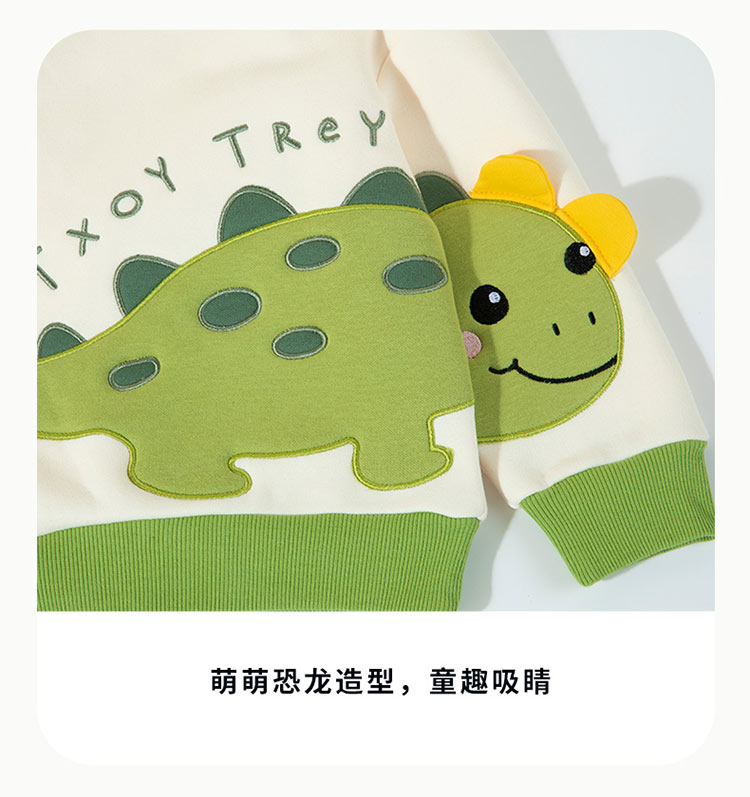 贝贝怡恐龙24秋冬新款男童加绒保暖套装运动休闲卫衣卫裤套装ZB3DT092